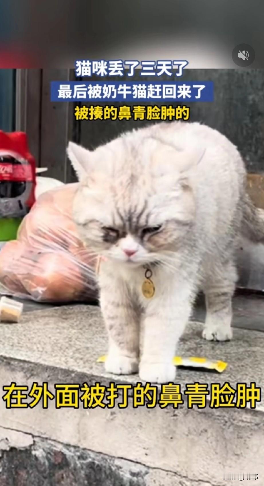 太逗了!一位小姐姐养了一只宠物猫,平时养尊处优的,日子过得十分舒服,可这天小姐姐发现它的猫咪不见了,心急如焚特别伤心。 她也很努力的在到处寻找,可猫咪依旧杳无音信,她非常难过伤心。可没想到第三天的时候,她在楼下看到了搞笑的一幕,只见她的猫被一只黑色的牛奶猫在后面赶走朝她走来。 小姐姐看到失而复得的猫咪,非常开心,可一看猫咪差点笑傻,她的猫咪估计是被牛奶猫揍了,被打的鼻青脸肿,非常委屈,果然家猫干不过野猫啊!