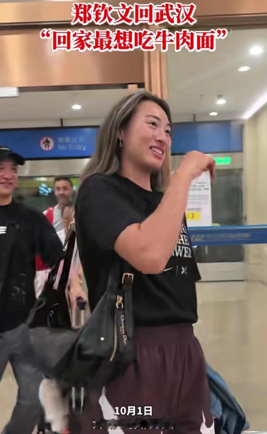 🇨🇳10月1日的武汉天河机场,空气里都飘着家乡的味道~刚落地就被大家的热情包围,手捧鲜花的瞬间,真的狠狠感受到了“回家”的温暖✨ 离开家乡征战赛场的日子里,最心心念念的就是那一碗热辣喷香的武汉牛肉面!劲道的面条裹满浓郁的牛肉汤汁,一口下去,是刻在DNA里的家乡记忆,这大概就是“碳水快乐”的极致吧~ 虽然身上的伤病还需要时间恢复,但回到武汉,就像给身心充了个电。接下来会好好养伤,也期待以更好的状态和大家见面,继续在赛场上为梦想拼搏,为家乡争光! 郑钦文回武汉 家乡的牛肉面我来了