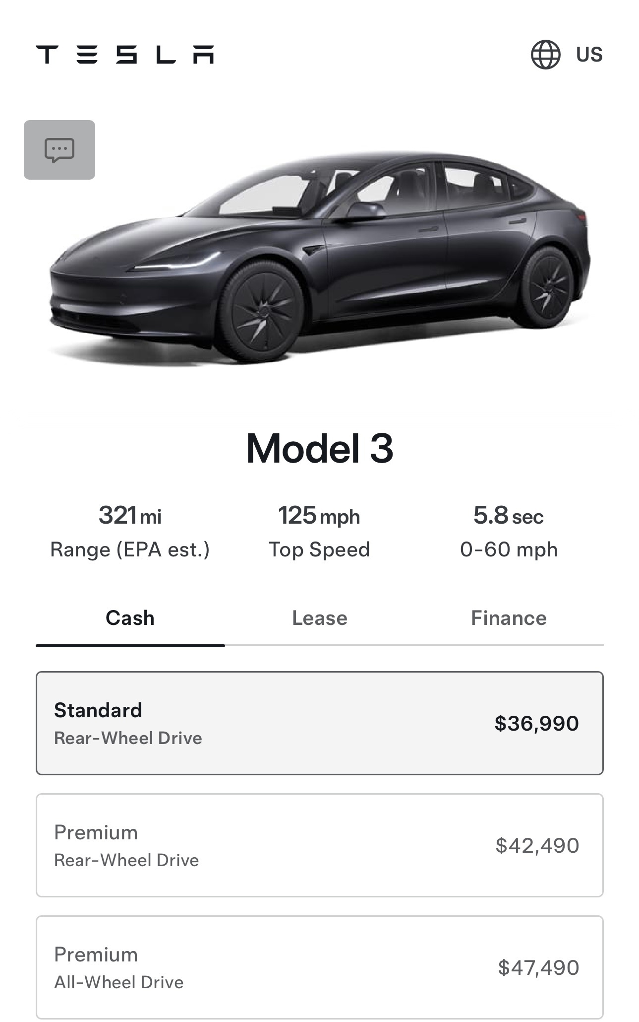 廉价版Model3和Y终于上了,目前看只在美国市场上市。