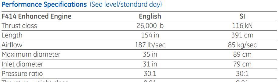 这两天网上流出来了高性能中推的相关参数表。今天就来将这个高性能中推与F-414和EJ200做一个详细对比。 首先需要指出的是F-414实际上有两种主要型号,一种是F-414-GE-400,这种就是目前大部分F-18E/F使用的版本。加力推力10吨,空气流量77千克每秒,涵道比0.25,非加力耗油率是0.84,加力状态耗油率是1.85。另一种型号是F-414EPE,或者可以简单的理解为F-414增推版,推力增大到了12吨,空气流量增大到85千克每秒。 而我们的高性能中推呢?目前来看思路和F-414还是不太一致的,我们的涵道比达到了0.5,空气流量是100千克每秒,这就意味着高性能中推的载机平台需要比F-18EF更大,因为要有更大的进气道。这与网传J-35A空重达到17吨左右是可以相互印证的。 从结构设计来看,我们的高性能中推更像是欧洲的EJ200,都是3级低压和5级高压的设计,涵道比二者分别是0.4和0.5,也较为接近,与F-414存在显著差异。可以这么说我们的高性能中推是EJ200的放大版,而不是F-414的。不过效率上我们的高性能中推还是要低于EJ200的,EJ200的非加力耗油率是0.775,加力状态耗油率只有1.7。这可能就是放大带来的损耗吧。 目前这个状态的高性能中推推力够不够?个人认为仍然不足。F-18即使使用F-414-GE-400,双发推力达到20吨,空重是14.55吨,二者相除等于1.37。而J-35A双发推力22吨,空重17吨,二者相除是1.29。这应该是隐身设计带来的副作用,F-35也不能逃避这一问题。F-35C单发19.5吨,空重15.7吨,这个指标数值只有1.24,更菜。。。所以美国海军死活看不上F-35C。 所以希望相关部门进一步对改发动机进行增推,或者降低油耗。推力达到12吨,或者耗油率降低到0.75至少得选一个。美国的F-35C虽然推重比很菜,但是F-135的耗油率只有0.68,可以当隐身战斗轰炸机用。