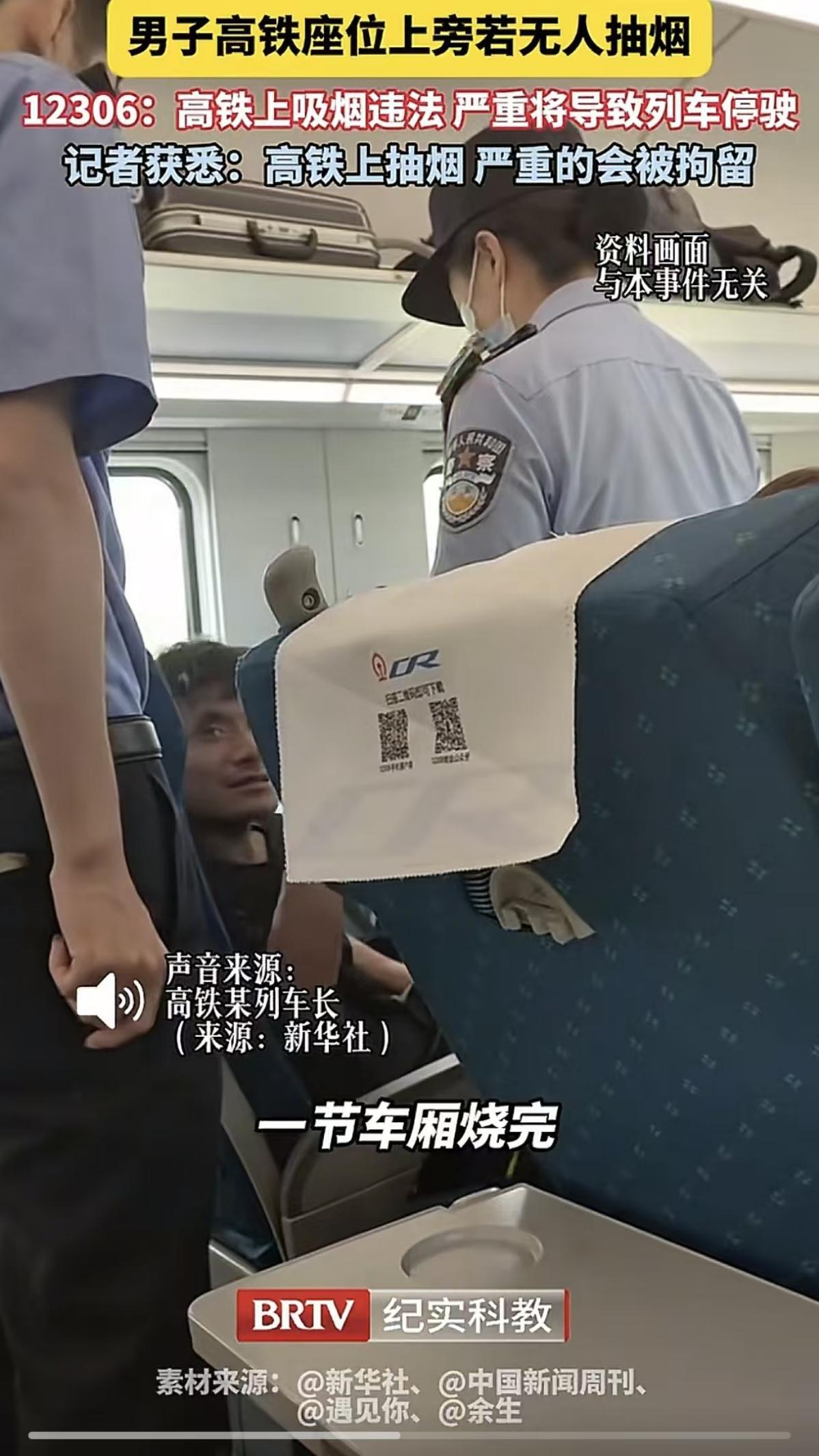 这事儿真是让人哭笑不得。高铁上一位光头大爷,居然旁若无人地抽起烟来,那架势跟坐在自家客厅似的。 旁边乘客赶紧举报,列车员过来掐了烟,没收打火机。大爷还没当回事,结果到下一站,直接上来四个警察,"咔嚓"给他戴上了手铐。视频里大爷还委屈巴巴地喊:"我又没有犯罪!" 都2024年了,还有人不知道高铁全车禁烟?烟雾报警器一响,整车都可能紧急停车,这可不是闹着玩的。就为抽这一口烟,把自己从乘客抽成了嫌疑人,何苦呢? 说实话,劝人戒烟真是世纪难题。你跟他说健康,他跟你举例谁谁抽到九十九;你说省钱,他说人生就这么点爱好。硬劝根本没用,还得讲点技巧。 要是朋友递烟,可以这么说:"真不行,最近在备孕/健身,得管住自己。你这么自律的人肯定懂。"先夸他再讲自己的原则,给对方留足面子。 要是在室内抽烟,可以主动提议:"哥,咱出去聊吧,正好我也想透透气。"这样既避免了二手烟,又给了对方台阶下。 遇到吐槽戒烟难的,不妨鼓励他:"确实不容易,能戒掉的都是狠人。不过以你的毅力,肯定没问题。"把戒烟塑造成一个值得挑战的目标,激发他的好胜心。 说到底,高铁不是法外之地,咱们的社交圈也不该成为二手烟聚集地。遇到这种事儿,该举报举报,该劝解劝解,既维护公共安全,也照顾朋友情面。