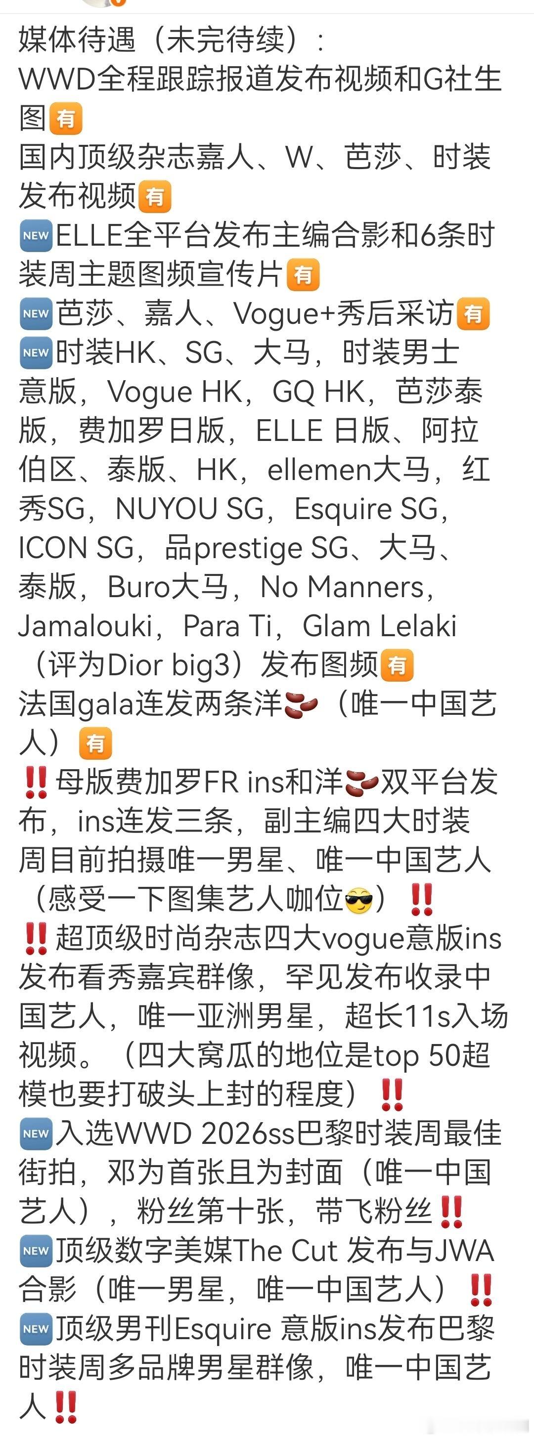邓为巴黎时装周累积接受近40家国外权威媒体收录和报道后,再度拿下星品影响力第一,