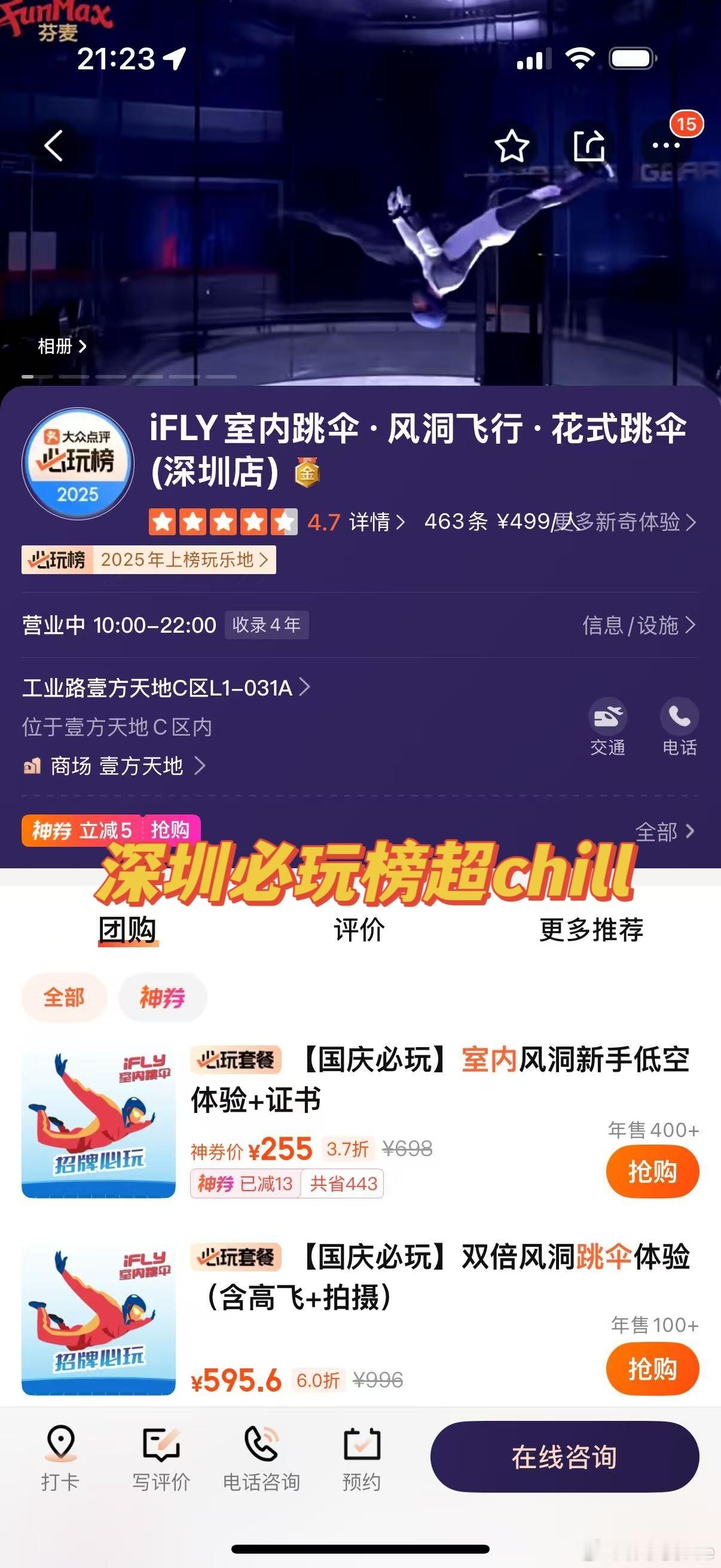 ✅IFLY室内跳伞·风洞飞行·花式跳伞(深圳店)【必玩榜】