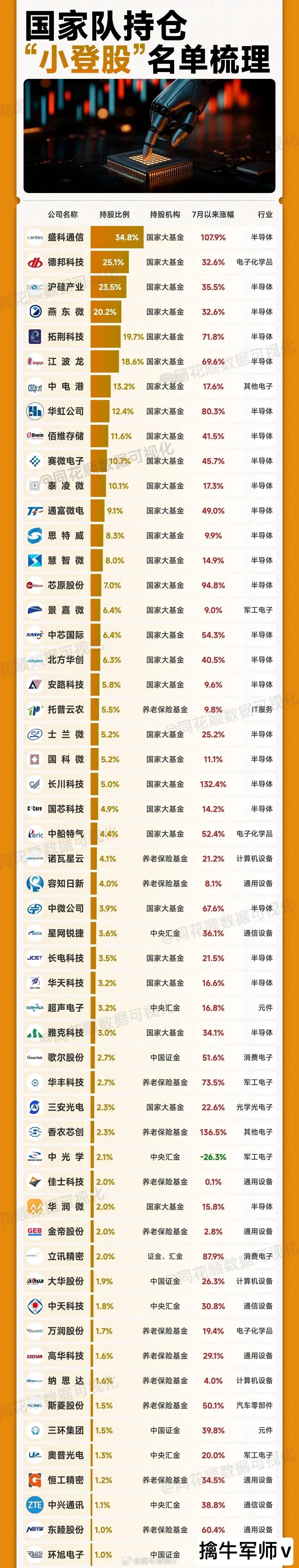 🔍 解读:国家资金高度聚焦硬科技,特别是半导体全产业链,且重仓股大多表现优异,具备较强的政策与资金双重驱动逻辑。