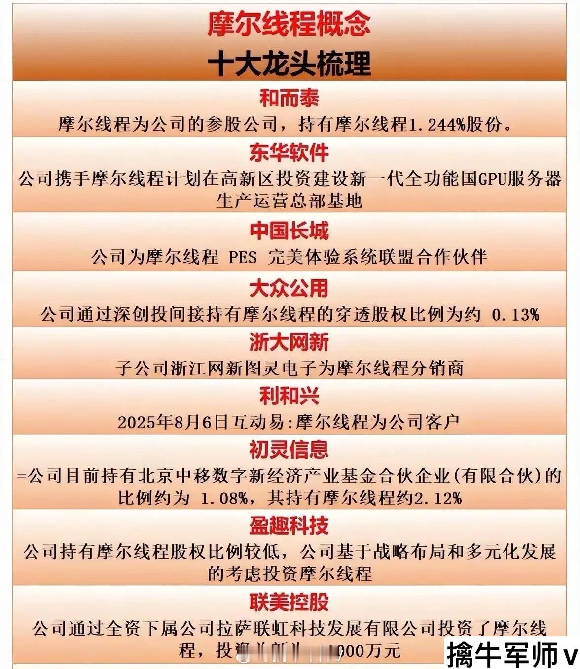 - 利和兴、初灵信息、盈趣科技、联美控股等:均为摩尔线程客户或投资人(直接或通过基金间接持有)