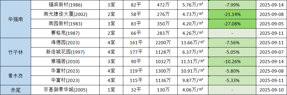 福田市场整体表现稳健,特别是次新楼盘受到买家青睐。绿景尚悦府的回迁房两房单位以9-10万的单价成交,显示出市场对福田核心地段次新房的认可。相比之下,曾经一房难求的海德园价格回调幅度较大,目前已接近当初的一手购入价格,让不少早期投资者感到意外。