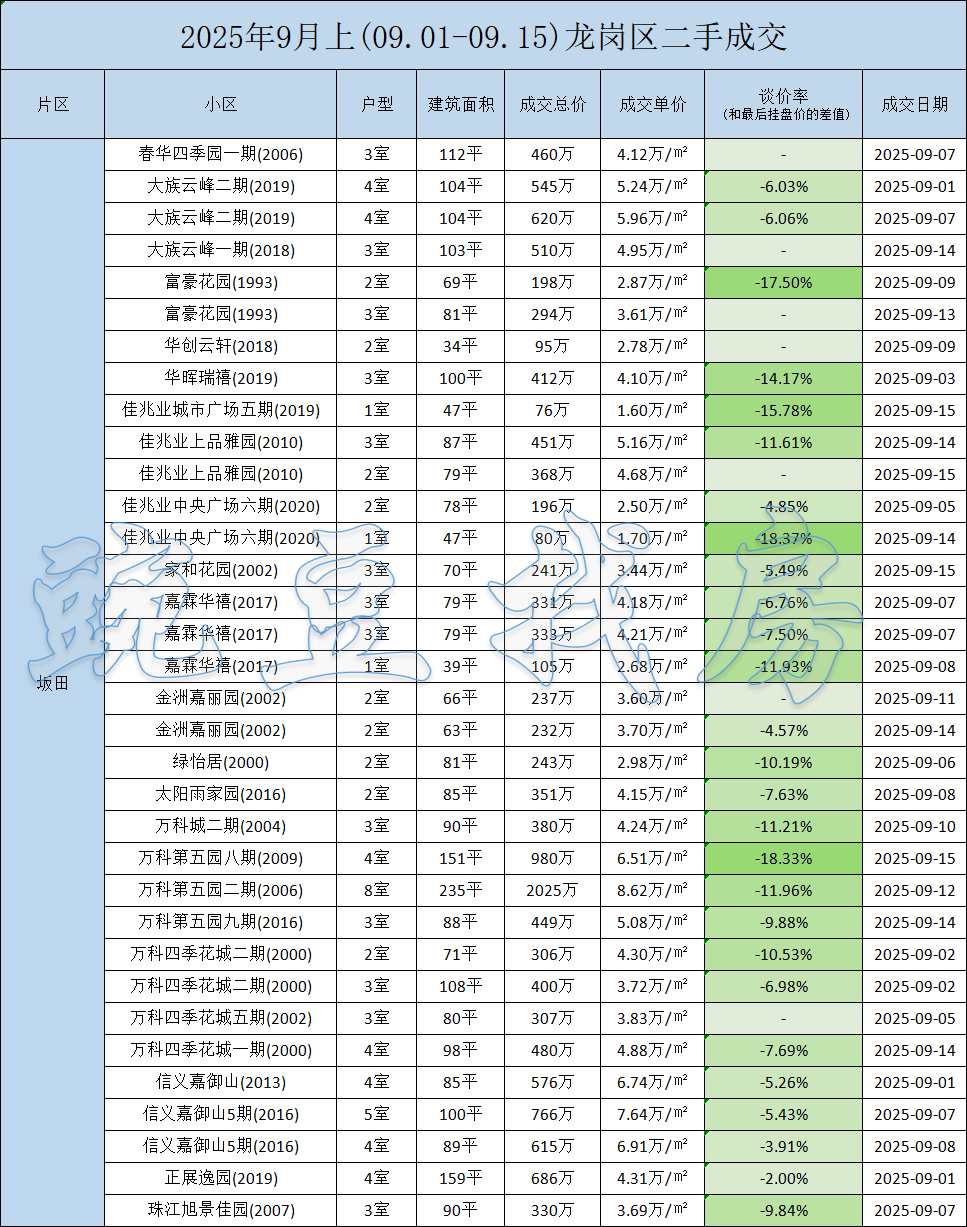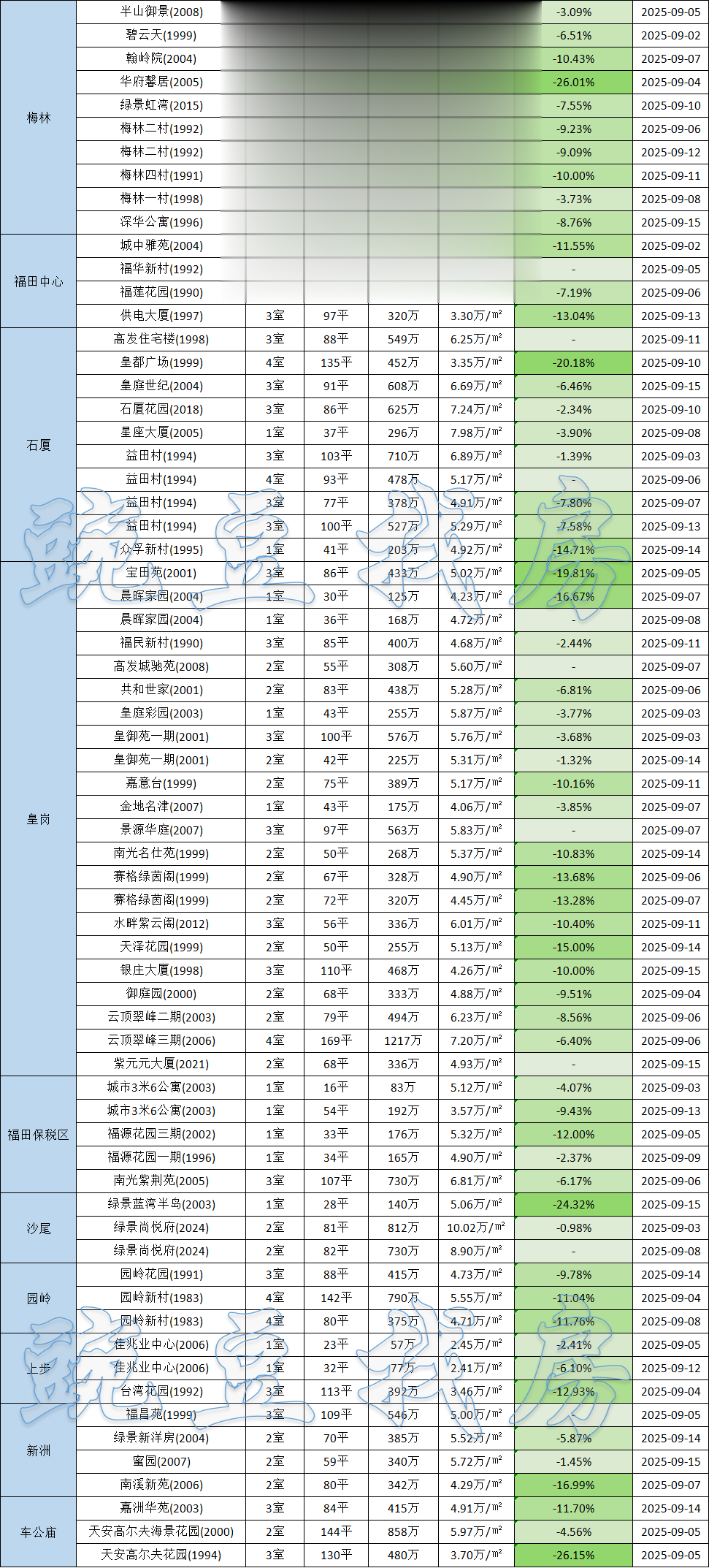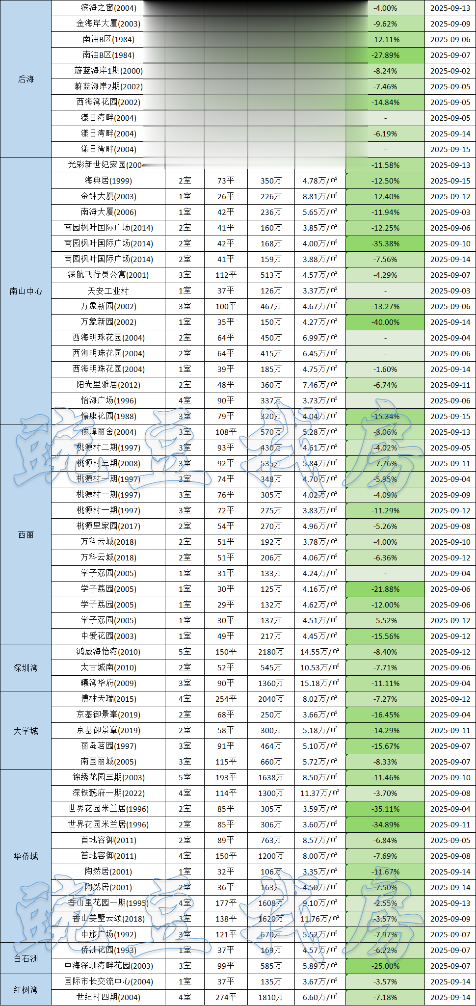 当前市场环境下,置业的核心逻辑已转变为选择安全边际高的项目。这包括:优选核心地段的优质资产、关注项目的实际居住品质、评估周边的真实配套成熟度,以及避开过度依赖概念炒作的区域。对于真正的自住客群而言,当前市场反而提供了难得的“淘金”机会,关键是要摒弃投机思维,从长远居住价值出发做出选择。深圳楼市新政落地后,9月上旬的二手房成交情况引发市场广泛关注。整体来看,曾经备受追捧的“网红盘”普遍表现乏力,部分楼盘价格回调幅度超出预期,而一些原本低调的住宅项目,反而呈现出较强的价格韧性。