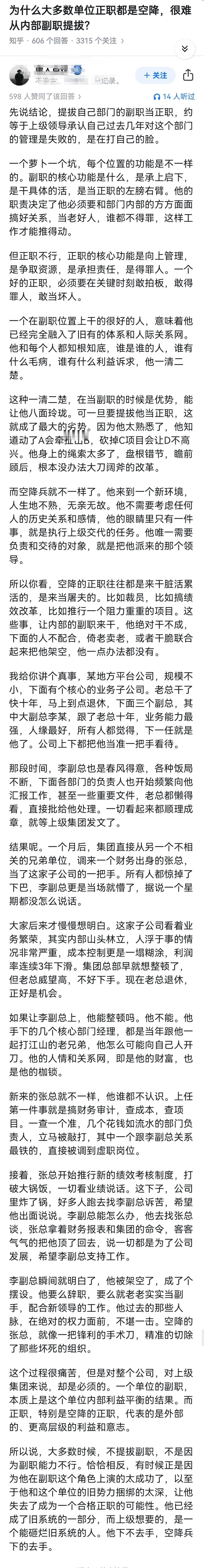 为什么大多数单位正职都是空降,很难从内部副职提拔?