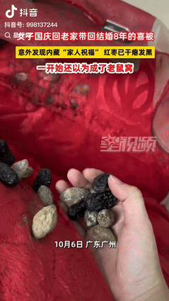 “意外的惊喜!”10月8日,广东广州,一女子拿结婚8年的喜被回老家,抖开被子的瞬间,几颗发黑的颗粒掉出来,开始以为是老鼠躲在被里生崽,不料,竟是家人送给她的“祝福”,网友:被子里的时间胶囊![舔屏] 广州一位女子结婚8年了,家里被子多得用不完,就打算把当年的喜被拿回娘家,她想着这被子虽然没怎么盖过,但毕竟存放了这么久,用之前还是找个大晴天晒一晒比较好。 抖开被子的瞬间,几颗黑乎乎的东西掉到地上,发出“咚咚”的声响,女子吓了一跳,凑近一看,是几颗干瘪发黑的红枣,还有花生、桂圆之类的干果,全都干硬得像石头一样。 她这才想起来,当年结婚时妈妈忙前忙后帮她收拾陪嫁,好像说过要在被子里放点东西,可那会儿自己满脑子都是婚礼的事,根本没往心里去,后来也完全忘了这回事,这一放就是8年,家里人估计以为她早就发现了,所以也没人再提。 把被子完全翻开后,里面藏的东西还真不少,红枣、花生、桂圆、莲子,虽然都变了颜色不能吃了,但能看出当年家人准备得挺用心。 按老家的习俗,这些东西都有讲究,红枣寓意“早生贵子”,花生寓意“花着生”,桂圆代表“团团圆圆”,莲子则是“连生贵子”。 不少地方都有在喜被里放吉祥物的传统,除了这些干果,有的地方还会放红包、硬币,寓意新人生活富足,还有的会放艾草、香囊,既有驱邪的意思,也能让被子有淡淡的香味,这些都是长辈对晚辈最朴实的祝福。 现在这床被子肯定是不能直接用了,那些干果已经氧化发黑,被子里可能也有灰尘和细菌滋生,女子说得拿到专业洗衣店好好清洗消毒一遍才行,毕竟存放了这么多年。 对这位女子来说,虽然清洗被子有点麻烦,但这份迟到的发现也是特别的回忆,她把这事发到网上后,不少网友都说被暖到了,还有人开玩笑说“你妈妈的祝福有点狠,直接封存了8年”。 其实生活中这样的小细节特别多,过年时长辈偷偷塞在枕头下的压岁钱,生日时朋友藏在包里的小卡片,出远门时妈妈塞进行李箱的零食,这些不起眼的举动,往往最能打动人心。 网友热评: “笑死,我结婚时婆婆在枕头里塞了花生,我睡了三年才发现,枕头都快被我枕出包浆了!” “这红枣放得比我儿子岁数都大,现在都能当文物了!不过能看出老人家多用心” “我们北方更狠!喜被里缝硬币硌得慌,拆被子时发现二十多枚钢镚,婆婆说这是'压财被'” “同款迷糊媳妇!去年换被套发现干桂圆渣,老公说是'持久型祝福',比维生素片还管用” “这才是真正的时光胶囊!我妈当年在我嫁妆里塞了写满祝福的布条,现在拿出来都褪色了,但每次看到都特暖心” 你家婚被/嫁妆里藏过什么'时光密码'?是应验了还是闹过笑话?评论区晒出你家的温暖故事! 信源:星视频