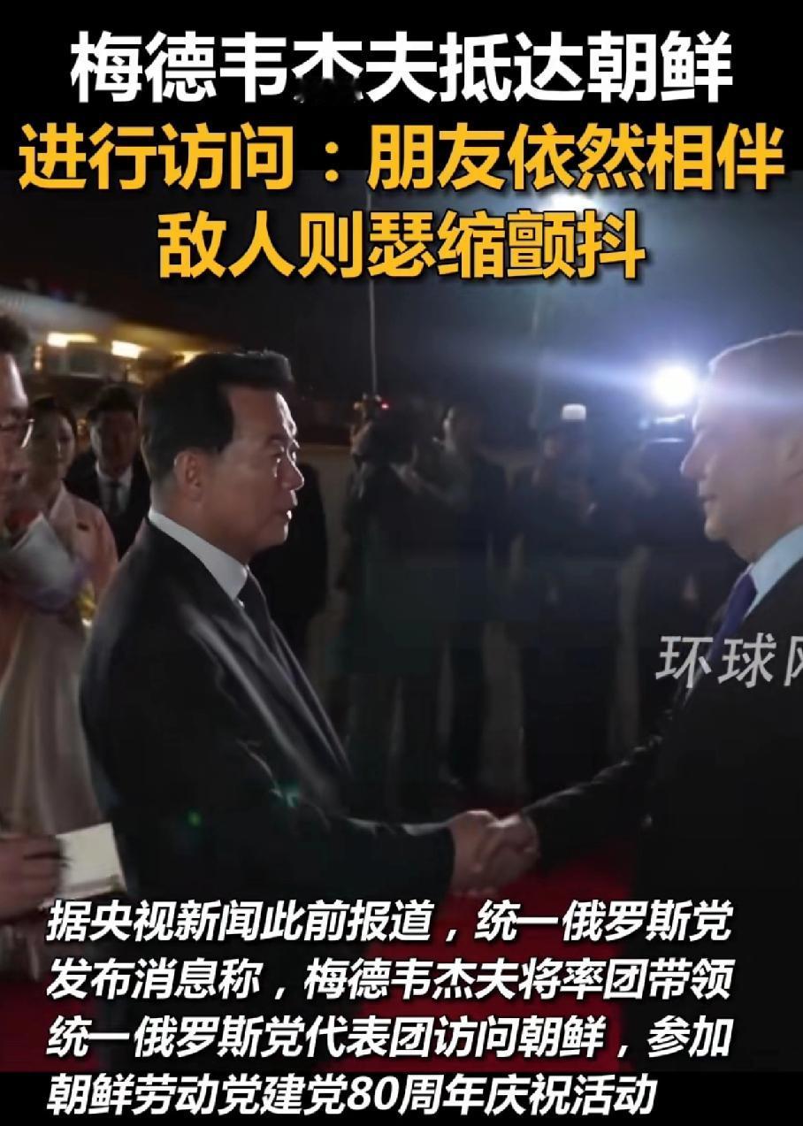 锋如刃,厉如炮,梅姐夫的口条实在是好在他抵达朝鲜那一刻,他说:时光荏苒,朋友依然相伴,敌人则在颤抖。 朋友,无疑是对俄朝两国关系的诠释。 敌人,则是对美西方及日韩概括。 有一说一,俄朝在俄乌冲突中的互动,无疑是金将军的一个大手笔,这不仅提升到了朝鲜的军事实力,也让其在地区及国际事务中获得更多空间。 从朝鲜劳动党80周年活动看,高朋满座就是最好的印证。 可以预见,这之后金将军将更开放,更多参与到国际事务中。 相反,韩国则可能出现完全相反的状态,这对李在明,高市早苗政府的智慧,是极大考验。