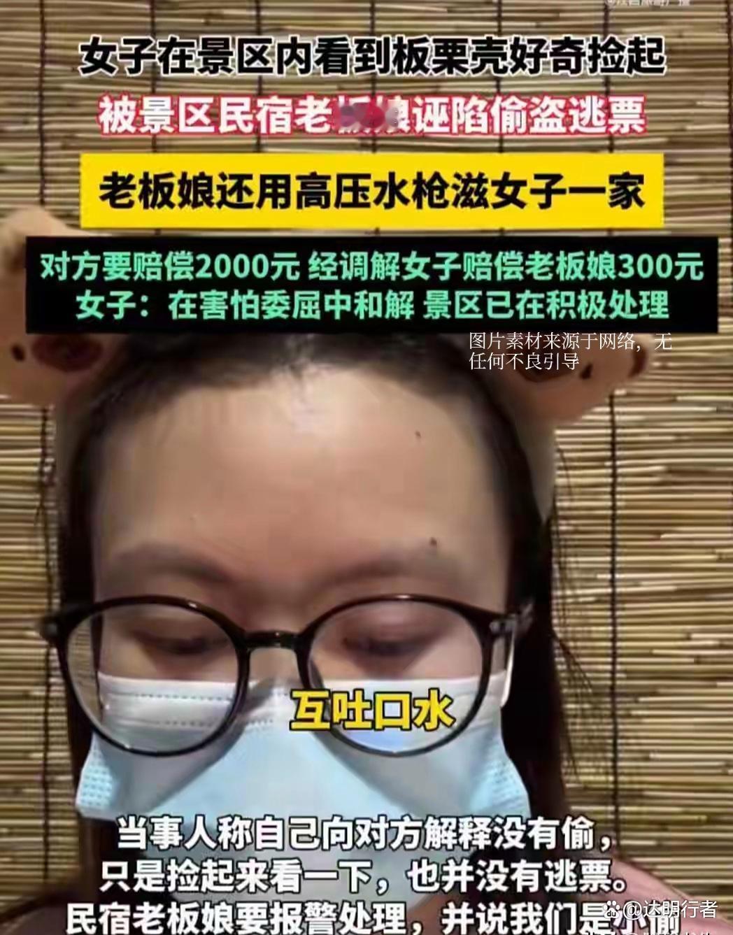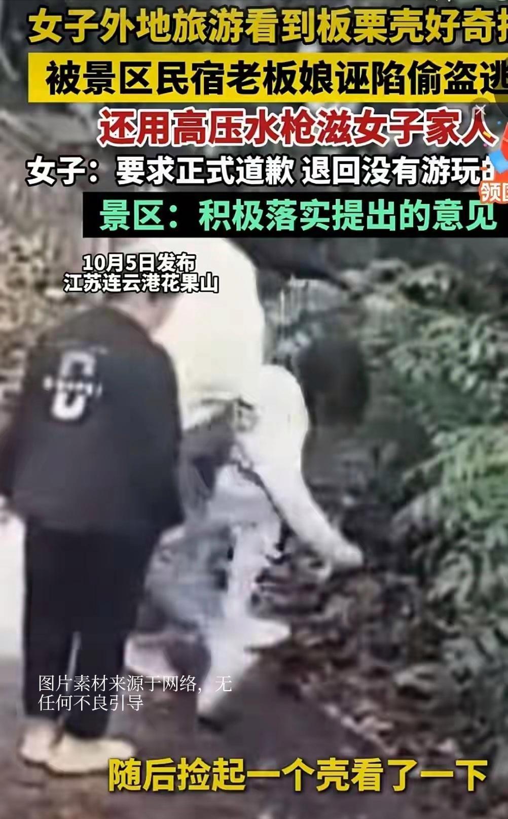 一枚板栗壳,砸碎的不只是游客心,更是景区的口碑 国庆假期,本该是欢声笑语的旅游季,却在江苏连云港花果山景区上演了一场荒诞剧。一位女游客因好奇捡起路边一个板栗壳,竟被民宿老板娘骂作"小偷",甚至被高压水枪喷得睁不开眼,最后还被迫赔了300元"营养费"。这到底是怎么回事?景区的"捡板栗"活动,怎么变成了"捡麻烦"? 更讽刺的是,就在事件发生前,连云港文旅部门还在官方平台热情宣传"花果山板栗熟了,游客能免费捡,是秋天的小体验"。一边鼓励游客"随便捡",一边却对游客捡板栗壳的行为大加指责,这种"两面派"的做法,让游客陷入"按指引行事却被追责"的尴尬境地。 民宿老板娘的过激行为更是让人震惊:从口头指责到高压水枪喷射,再到虚构"怀孕见红"索要高额赔偿,整个过程充满了对游客权益的漠视。而景区管理处却以"民宿不归景区管理"为由推卸责任,当记者追问时,景区工作人员只轻描淡写地说:"系民宿商户的个人问题(行为),景区全力协调。目前这件事已经协商好了,处理好了。" 但最让人动容的是游客的后续反应。她没有选择继续对抗,而是接受了官方调解,还主动在社交媒体发声:"今天在花果山的经历,让我明白了一个道理:景区的管理,不在于'禁止',而在于'引导'。300元不是赔偿,是提醒。希望景区能完善指引,让游客真正享受'捡板栗'的乐趣,而不是提心吊胆。" 这条朋友圈迅速引发热议。许多网友留言:"游客太有素质了!""希望景区能吸取教训,别再让游客寒心。" 更让人感动的是,这位游客没有就此罢休,而是主动联系了连云港文旅部门,提出了几点建议:在景区入口处设置清晰的"可捡区域"和"不可捡区域"标识;对民宿商户进行服务规范培训;建立游客反馈机制,及时解决类似问题。 她写道:"我不是来讨债的,我是来帮景区更好的。旅游不是'你赚我赔',而是'你我共赢'。" 景区方面也迅速响应,表示将采纳游客的建议,对景区管理进行全面升级。景区管理处负责人在最新声明中表示:"我们感谢这位游客的宝贵建议,这让我们看到了服务的不足。下一步,我们将完善景区标识系统,加强商户管理,让每一位游客都能安心游玩。" 游客的后续反应,展现了一种难能可贵的理性与包容。她没有把事件变成一场无休止的争吵,而是用建设性的态度推动了问题的解决。这不正是我们希望看到的游客与景区关系吗? 亲爱的读者,你有没有在旅游中遇到过类似"被坑"的经历?但你是否也像这位游客一样,选择了理性沟通,而不是无休止的抱怨?欢迎在评论区分享你的故事,让我们一起为更好的旅游环境发声!