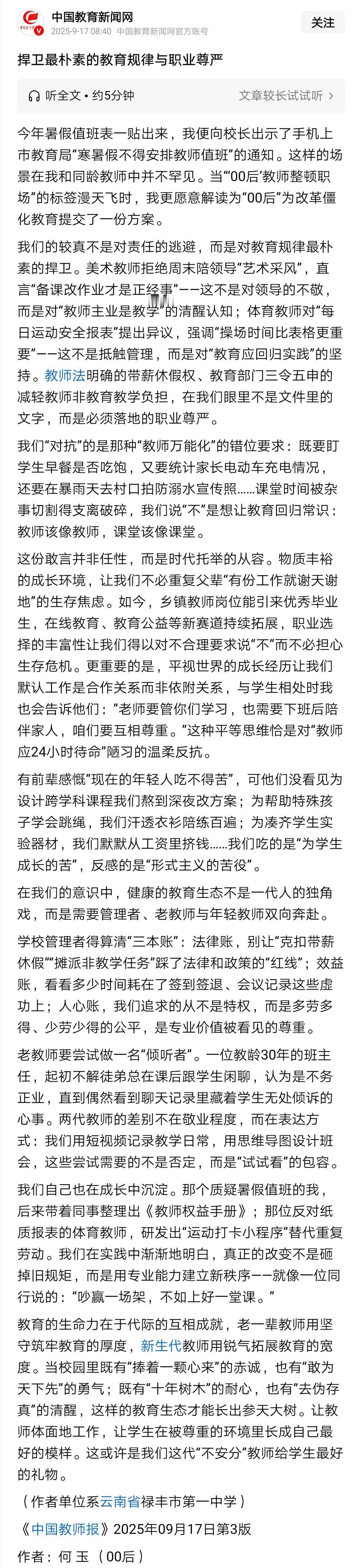 “捍卫最朴素的教育规律与职业尊严”,这该是常识。但是,当教育部门、学校要求延长学