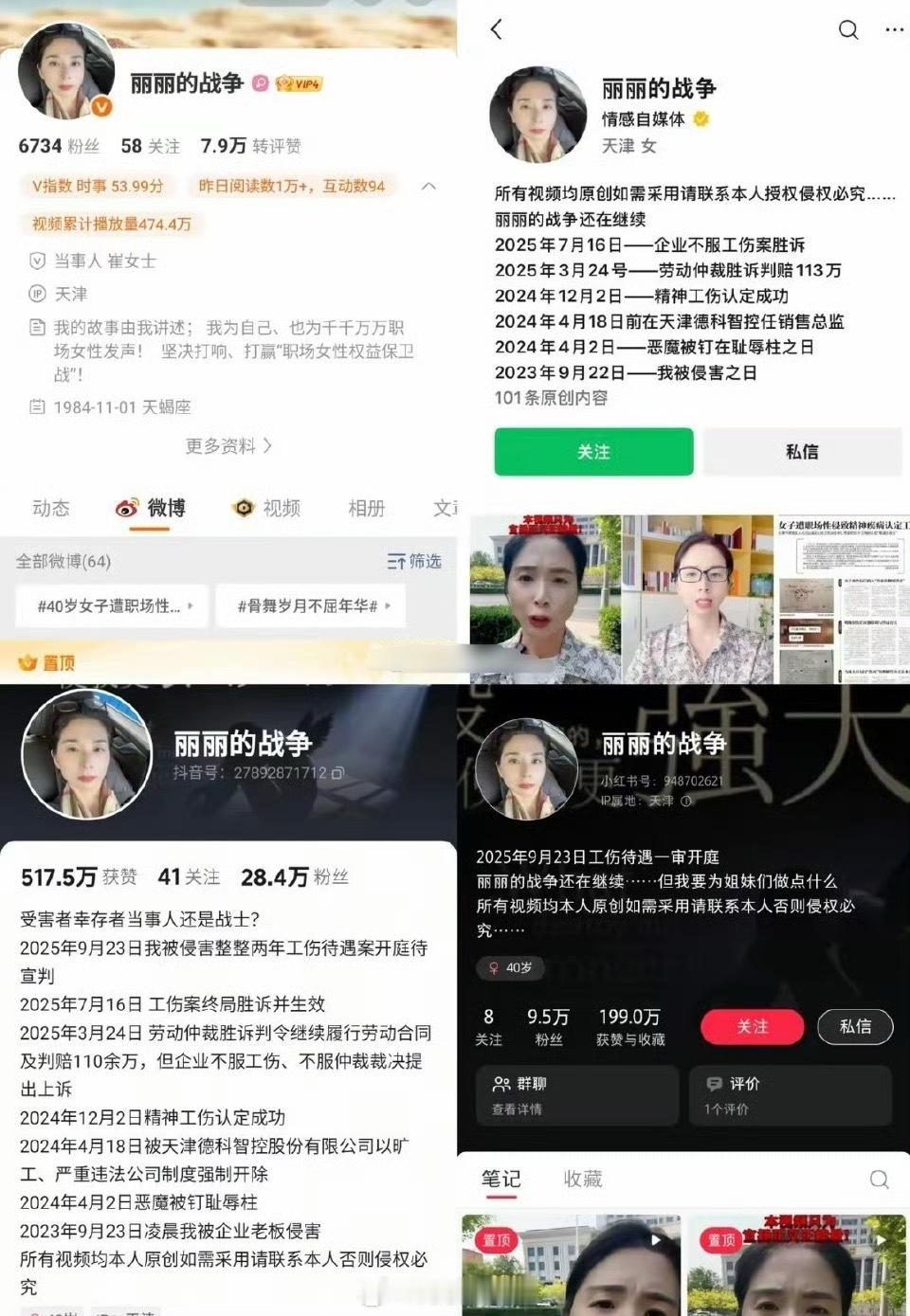 崔丽丽已经入住各大平台,目前有抖音,小红书,微博,视频号,全平台布局。