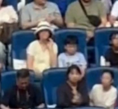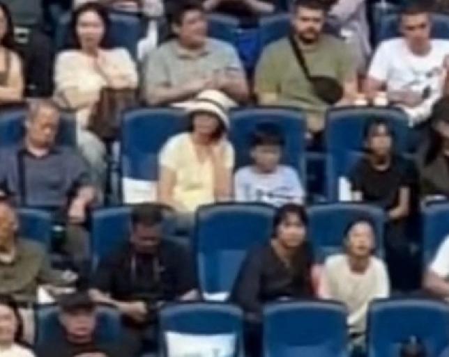 51岁董卿竟是吃货?带儿子看网球比赛,母子俩手拿零食吃得超香。但是依旧没有爸爸密