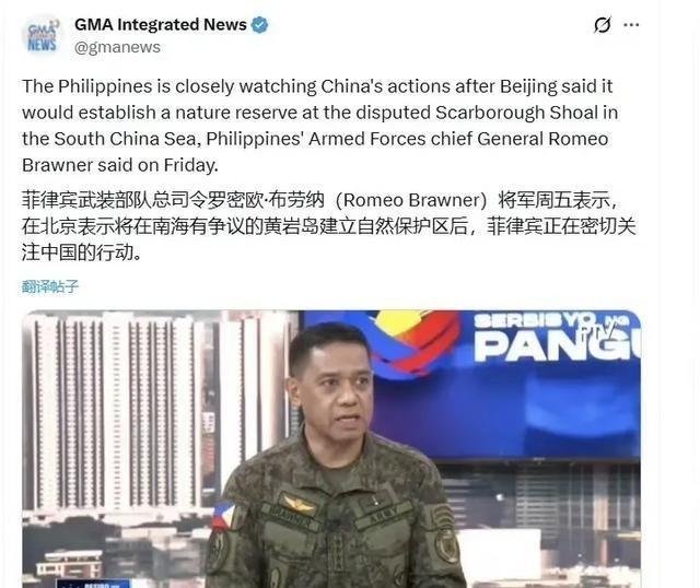 菲律宾军队总司令表示∶绝不允许中国吹填黄岩岛并建设军事基地,如果中国真建了军事基地,菲律宾将进行外交抗议。没想到,菲律宾总司令脑子进水了,黄岩岛是我们中国自己的岛屿,他竟然要进行外交抗议。这就是无知和傲慢的菲律宾。 黄岩岛这块礁盘,离菲律宾吕宋岛西边230公里,中国渔民从元朝就当自家渔场使,明清时候的航海图册里标得清清楚楚。20世纪中叶菲律宾开始扯200海里经济区的主张,可中国早就在那儿管辖,1995年美济礁建避风港时他们抗议过,没顶事儿。2012年4月菲律宾海军想扣中国渔船,闹出对峙,中国海警一插手就稳住局面,从那起每年休渔保护资源。黄岩岛珊瑚多鱼多,中国近年投放人工礁石,监测水质,实际帮周边海域稳住了生态。 2025年9月中国批了黄岩岛国家自然保护区,禁化学捕鱼和垃圾倾倒,菲律宾外交部立马叫嚣这是占领幌子。10月3日布劳纳在记者会上直球放话,说菲律宾绝不许中国在黄岩岛重演美济礁那套,填土建军事点就外交抗议。他把保护区计划说成军事化前奏,下令监视水域变化。这话听着硬气,可黄岩岛主权中国有历史法理撑腰,联合国海洋法公约管经济不碰领土。布劳纳上台后爱拉美国巡逻,2024年6月仁爱礁补给船被中国海警挡住,他批评执法,却不提自家船违规。 布劳纳的声明一出,菲律宾媒体跟风炒,国内渔民协会闹着要政府护航,可经济上中国是最大贸易伙伴,进口电子件和机器全靠那儿。黄岩岛争端不是头一回了,2024年夏菲律宾船靠近遭激光警示,布劳纳推军队买二手护卫舰,可预算紧,训练弹药都跟不上。国际上菲律宾单边发声,忽略中国古籍证据,像《广东通志》1731年就绘了岛礁坐标。布劳纳的姿态靠美菲条约,美军用克拉克基地,2025年1月巴丹群岛演习模拟防御,可中国外交重申双边谈,黄岩岛巡航照旧。 菲律宾渔民抱怨捕鱼区小了,鱼获掉20%,但中国措施堵了泰国偷捕船的路,这些船用灯诱鱼毁生态。布劳纳协调日本自卫队演习,吕宋海峡练反潜,可日本只看不插手。菲律宾媒体放动画模拟中国填海,民众网上转发要增兵,经济现实却让马尼拉只能嘴上抗议。中国保护区禁11月到2月渔期,珊瑚白化率降到5%,菲律宾环境部私下认账有益,公开还硬扛。布劳纳设南海任务组,周周汇总情报,软件画热力图标中国船轨迹,可巡逻艇老旧,燃料一短就返航。 布劳纳话音刚落,中国10月派H-6轰炸机和054A护卫舰在黄岩岛附近转悠,菲律宾外交部抗议信递过去,列关切点。