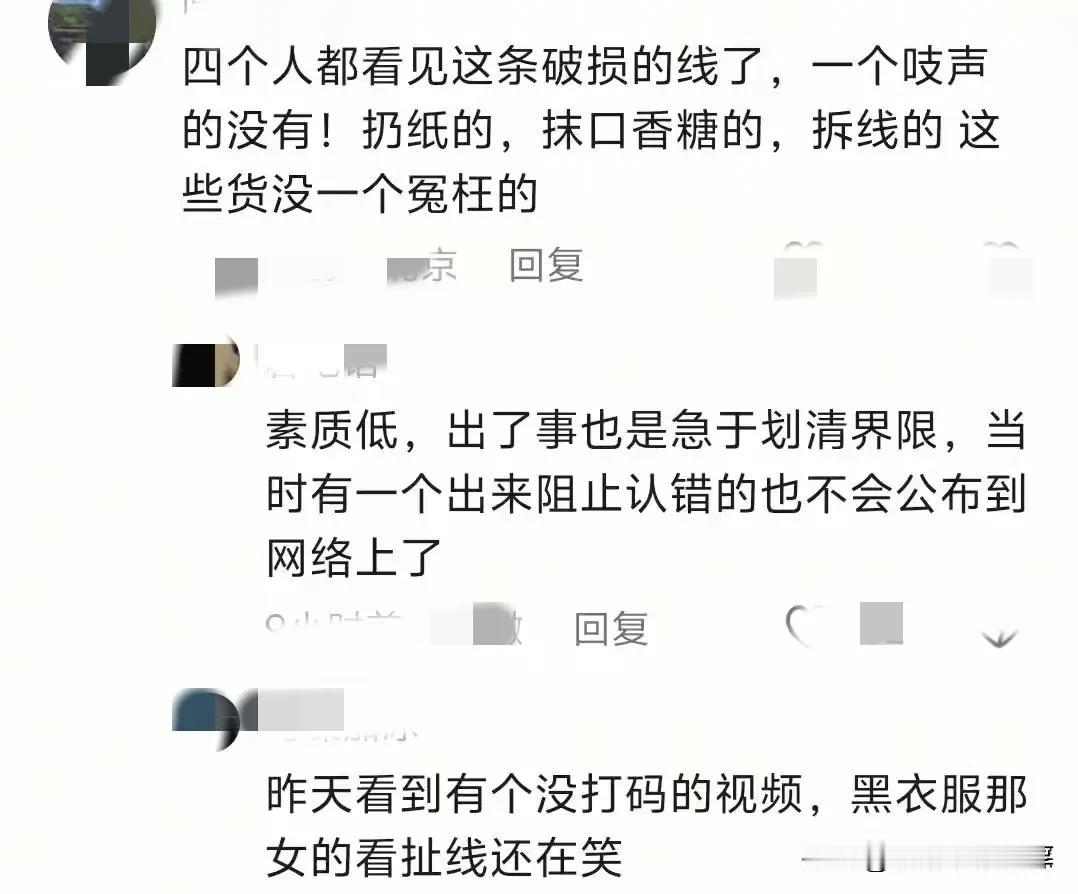 现在全网最心塞的, 应该就是那位手撕共享充电线的男人了吧, 跟着一起“做坏事”的三人反手就把他给背刺了,根本没把他当朋友! 全网一片叫好声啊,这就叫恶人自有恶人磨! “充电线”哥没想到,自己丑陋的一幕会被全网曝光,刚开始还不承认,直到看到了自己的视频,才承认错误,各种狡辩,理由奇葩! 不过最扎心的还是抹口香糖女子的发言,说跟他们没关系,根本没把“电线哥”当朋友!“心疼”电线哥一秒,多了怕他骄傲! 笑死了,四个人一起出去旅游,结果做了坏事,被网暴了,另外三个报团,让主角在暴风雨中凌乱,还真的演了一出“大义灭亲”的好戏! 不过众多网友还是不买账,不诚恳道歉,这个事还会继续发酵! 大家需要的不是敷衍,是态度诚恳的道歉!损人不利己,这事做多了真的会倒霉的,比如没“朋友”? 大家觉得呢?