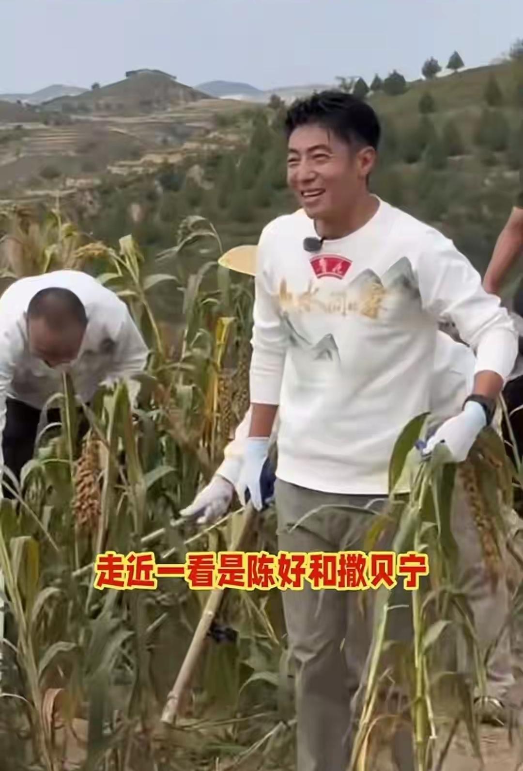 撒贝宁陈好成为焦点,在录制央视《山水间的家》时,在米脂高西沟的梯田里体验收割稻谷