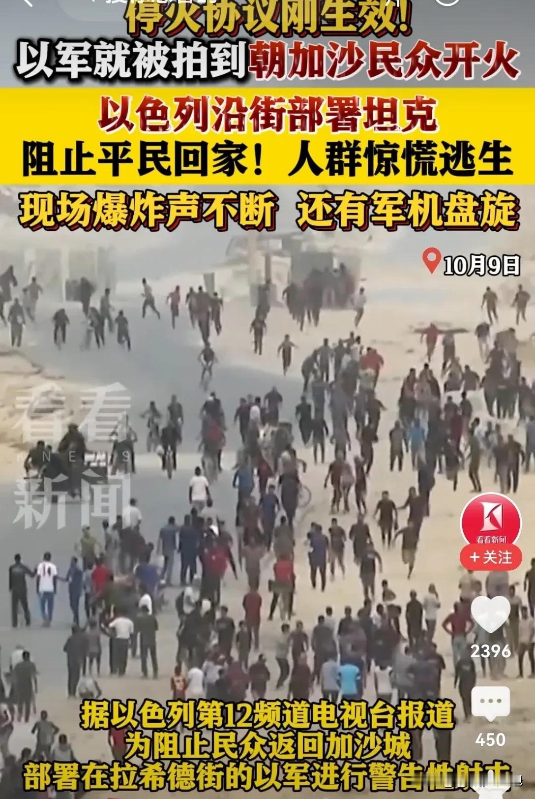 宁可相信世上有鬼,也不要相信以色列的破嘴!在当地时间9日中午12点,第1阶段停火正式生效。就在加沙民众,欢天喜地的想要回到家园的时候,以色列的大炮突然向他们开火,阻止这些加沙难民回自己的破烂的家,这样的协议到底有什么用?正当全世界都在关注加沙终于迎来和平了!以色列还是外甥打灯笼,照旧。四个担保国你们眼瞎吗?美国、土耳其、埃及、卡塔尔四大金刚做为担保国,是不是应该有所表示?看看这几个货,美国是以色列的马仔,卡塔尔刚挨了以色列的痛揍,埃及也是以色列的手下败将,土耳其嘴硬手软,没有一个给力的,这样的和平协议,在以色列眼里就是废纸,中东有以色列,就没有好,世界有美国,就永无宁日。