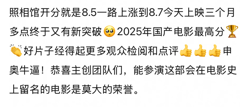 恭喜《南京照相馆》豆瓣评分涨到8.8!!!2025年国产电影最高分🏆👏我三刷