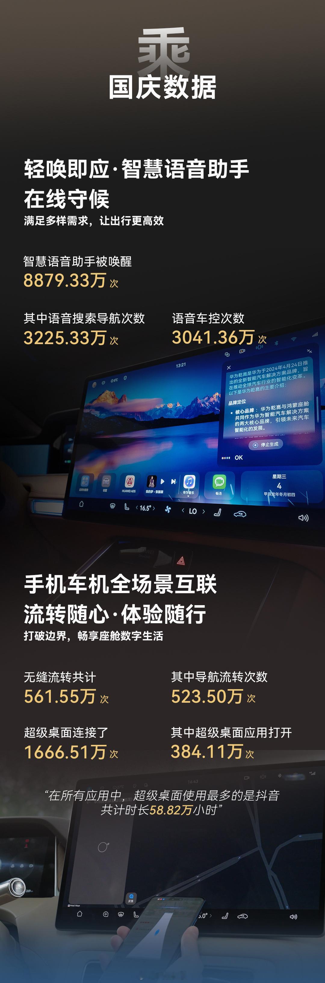 【华为乾崑 国庆出行报告发布!这个假期,智慧出行已成主流】国庆8天假期,华为乾崑智驾表现亮眼:累计辅助驾驶里程达2.94亿公里,相当于绕地球7350圈;车位到车位2.0,一键启用超101万次,覆盖全国50万停车场;智慧语音交互超8879万次,真正实现“能动口就不动手”。更值得一提的是,华为乾崑崑全程避免可能碰撞7.48万次,以“五维安全”守护每一次出行。