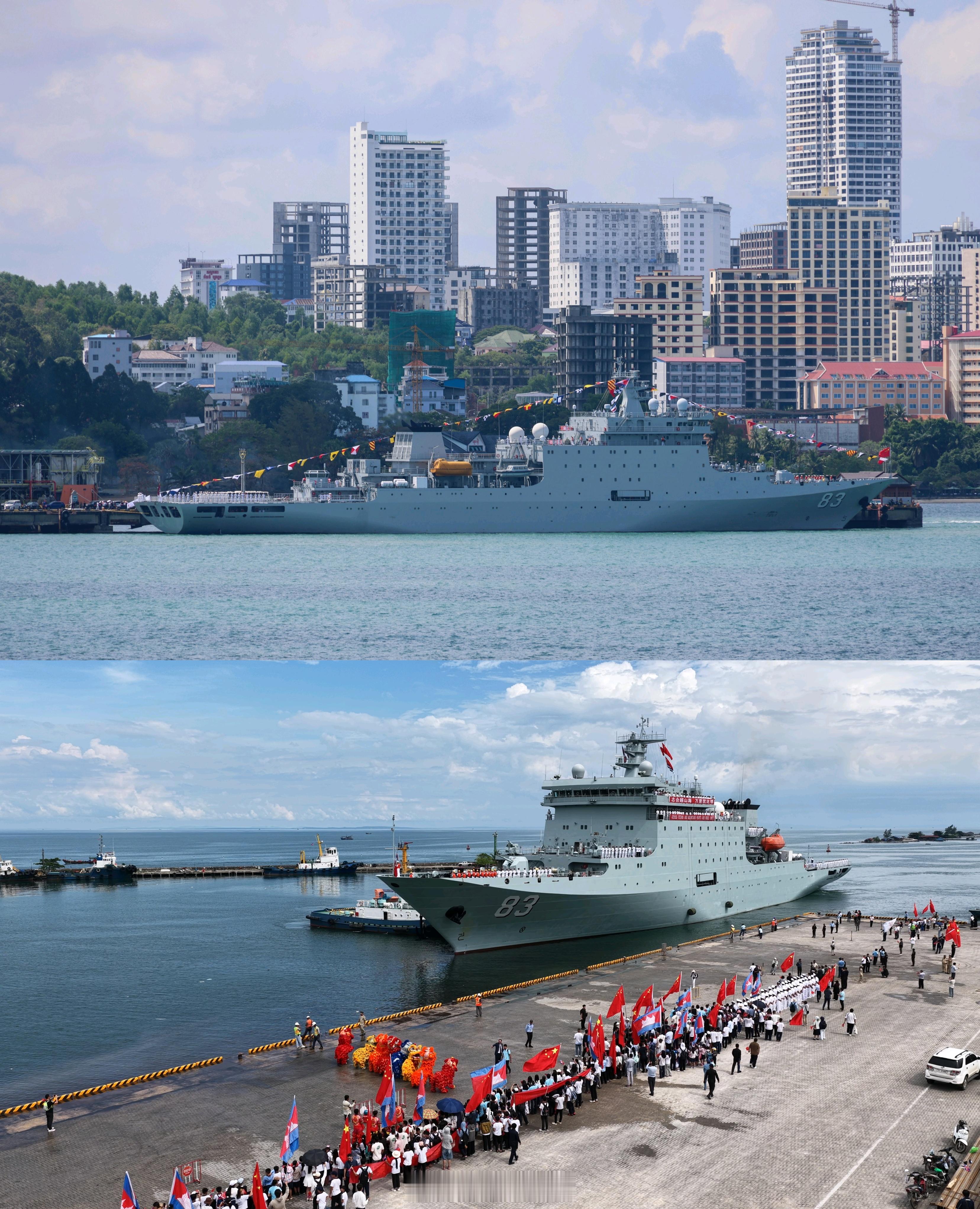 去年和今年戚继光舰在柬埔寨西哈努克港可以看到,今年靠泊的位置变了烽火问鼎计划中国