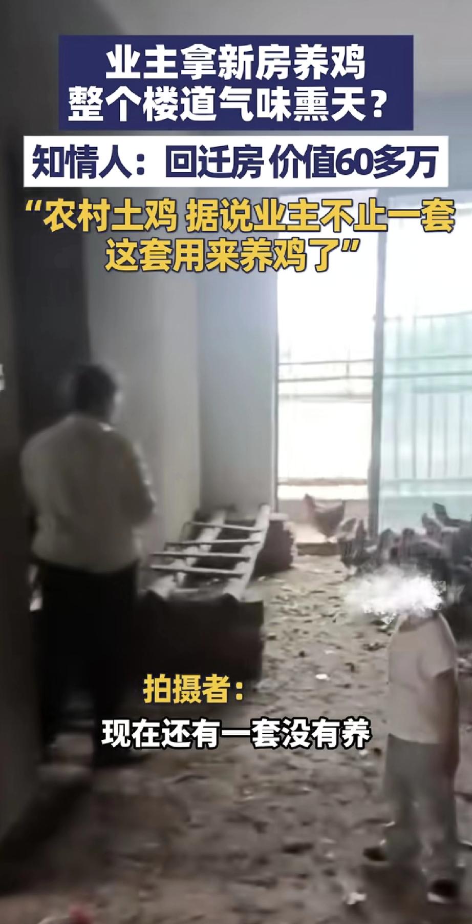这可真是新鲜事!有位业主拿到回迁房后,竟然在新房里养起了鸡。结果整个楼道都弥漫着