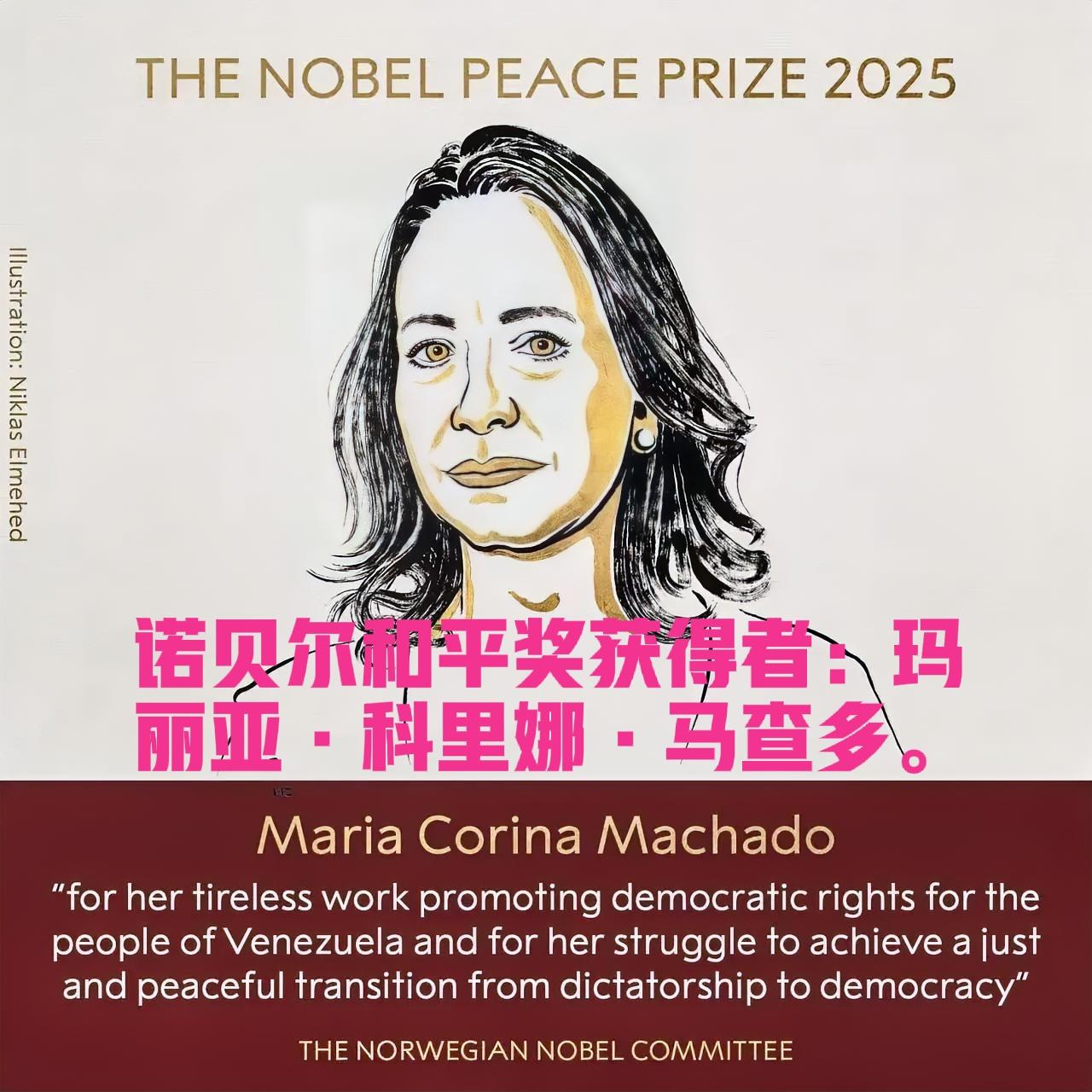 委内瑞拉: 诺贝尔和平奖获得者:玛丽亚·科里娜·马查多。 反对派领导人之一,公交车司机马肚罗的政敌。