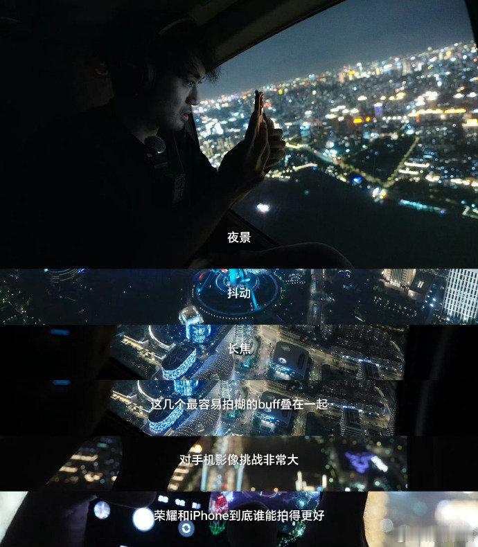 直升机航拍夜景稳的一比,荣耀Magic8系列真夜神是站稳了,画质直接把iPhon