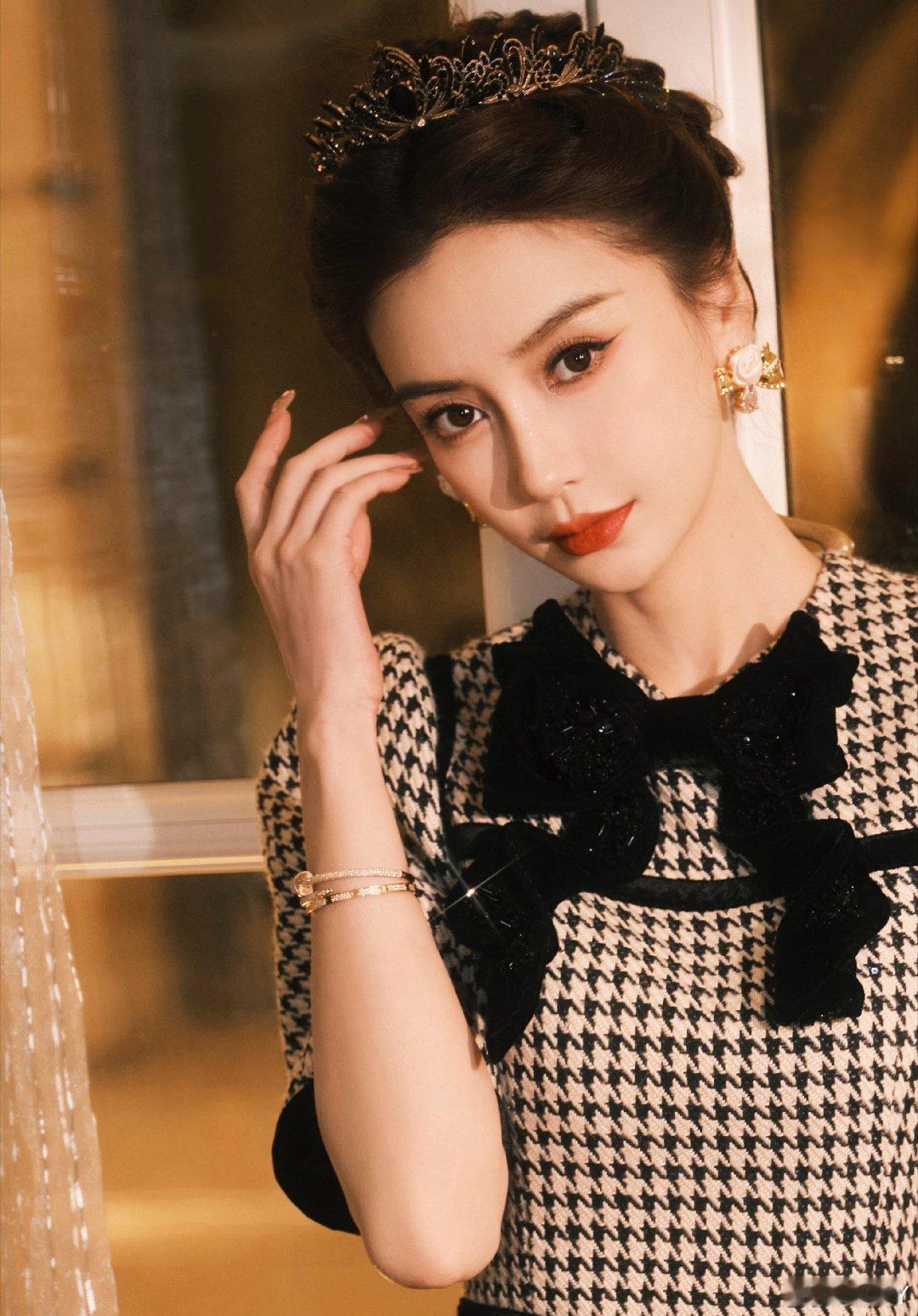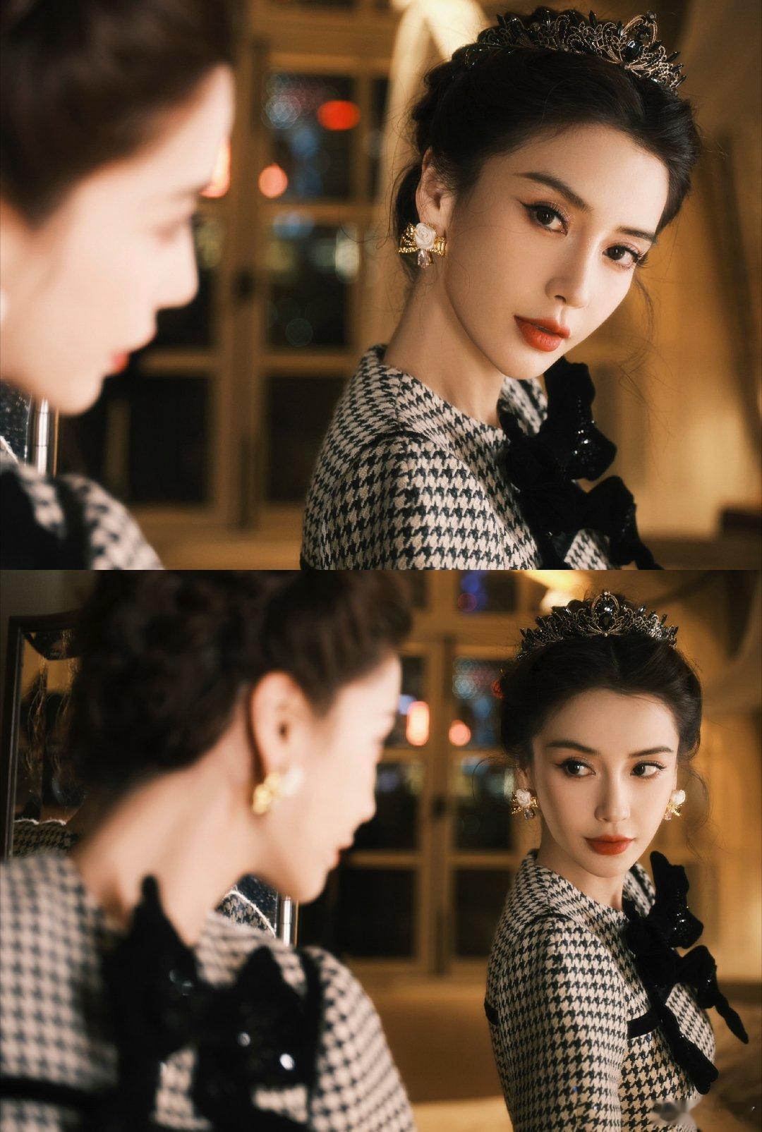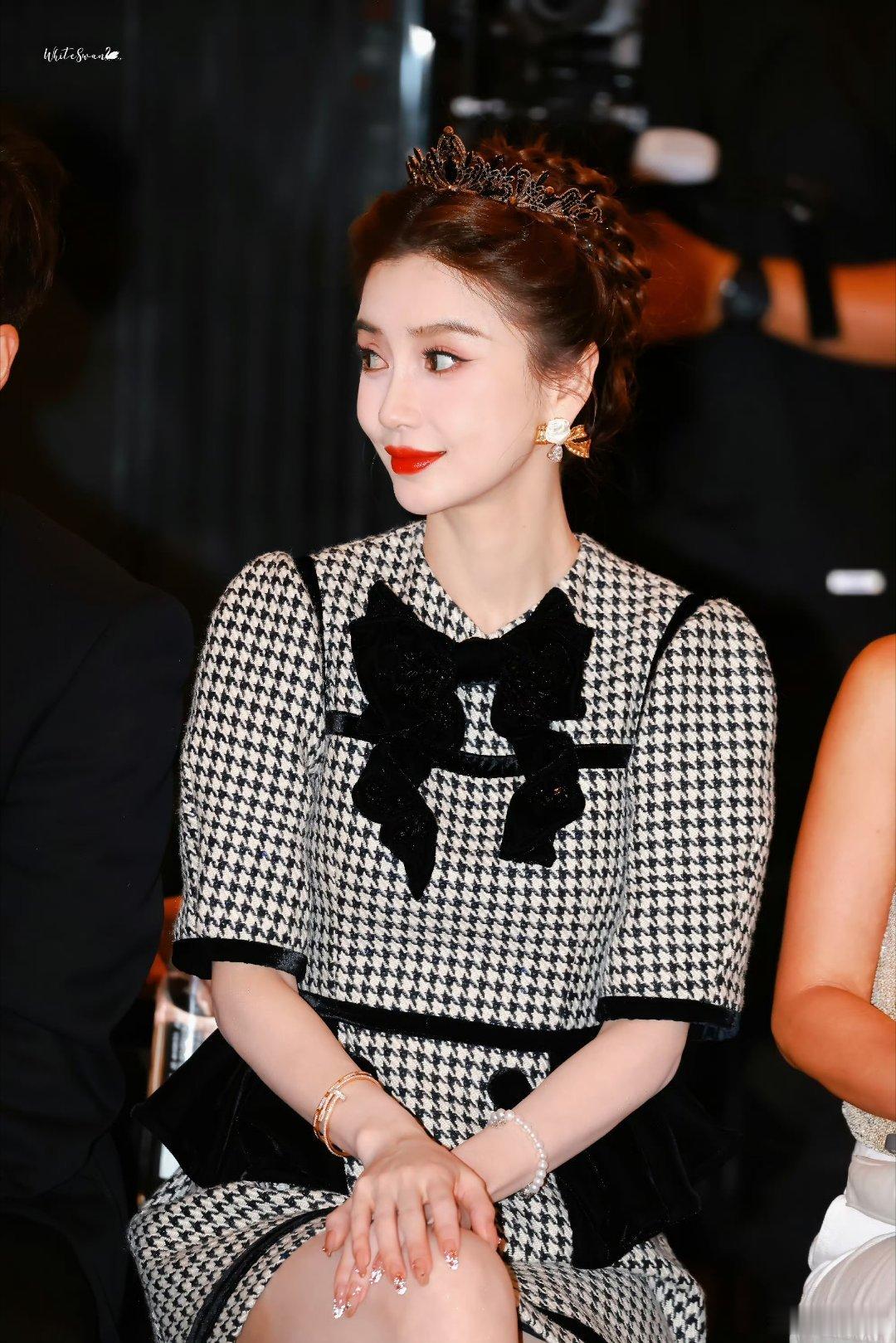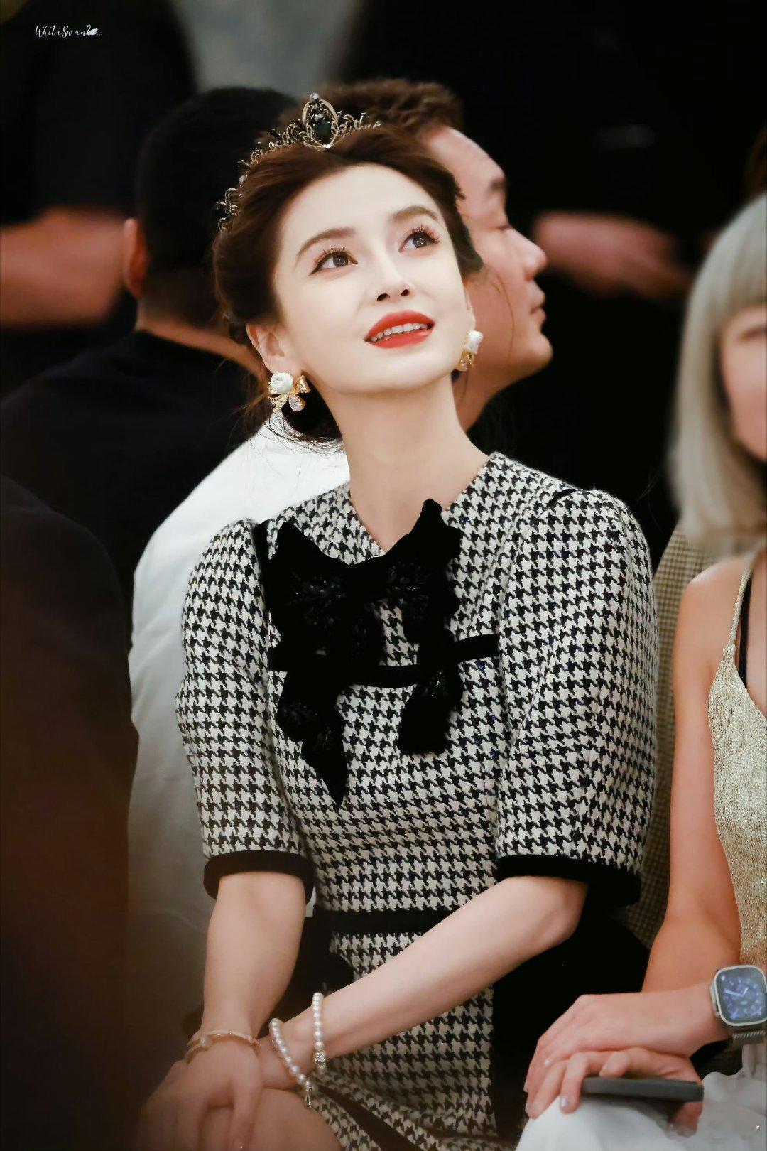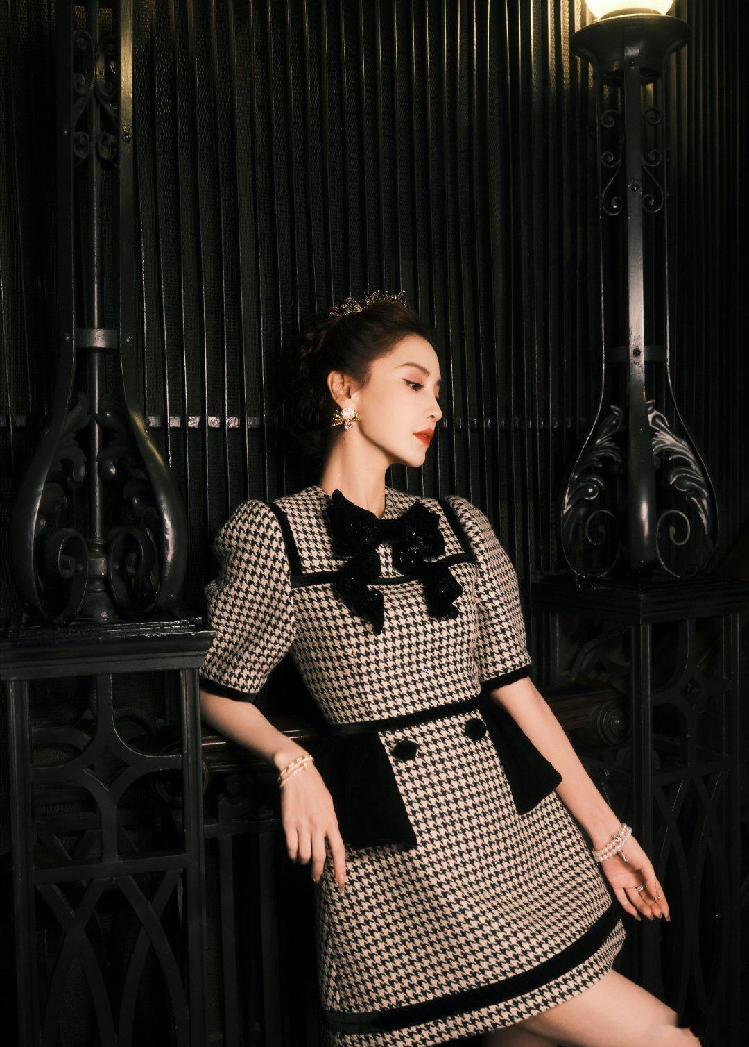angelababy[超话][兔子]angelababy皇冠千鸟格套裙这张脸