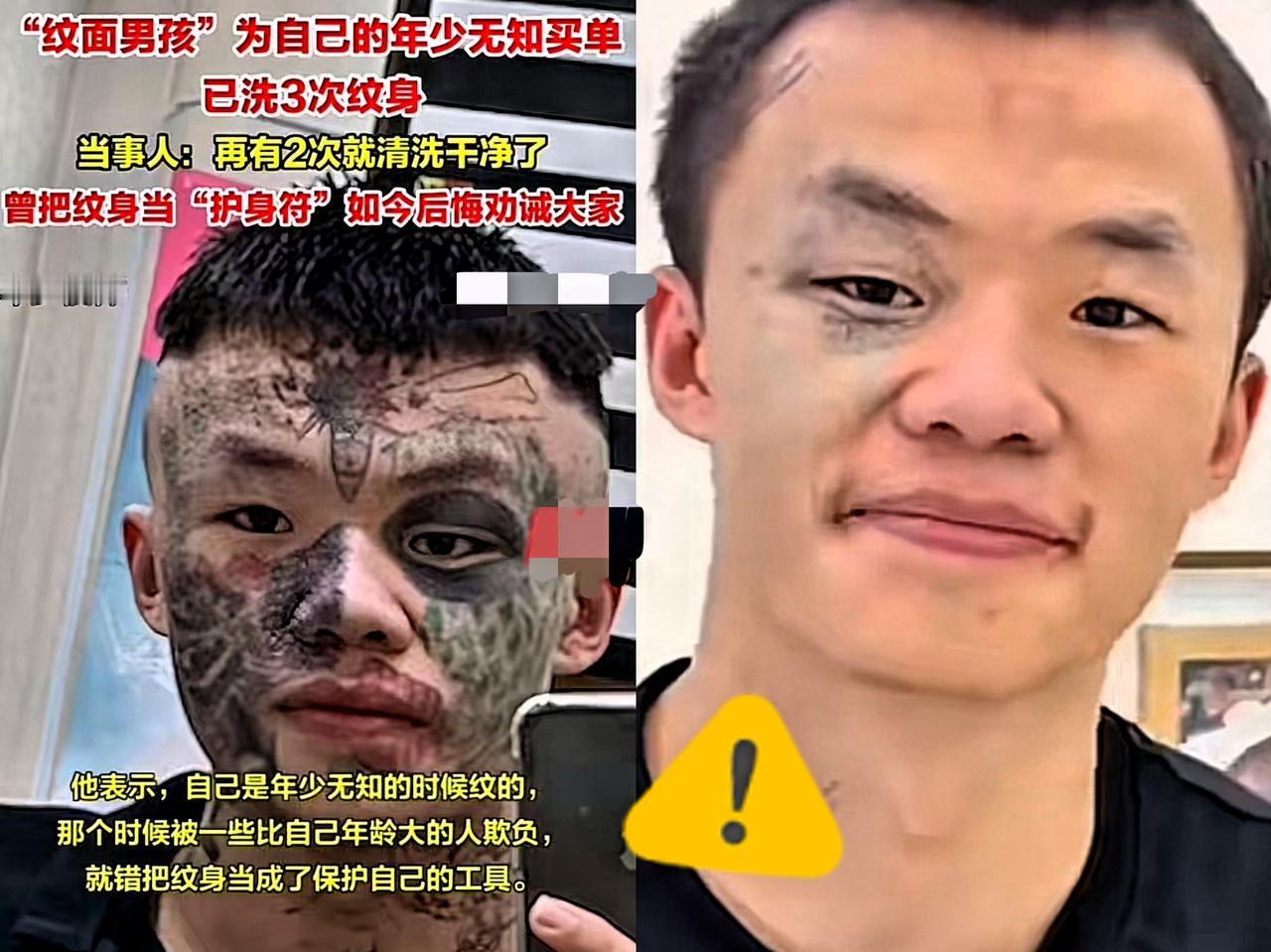 后悔了吧? 06年的广东男孩夏朝勇, 正咬着牙挨第五次激光洗纹身 脸上那道13岁纹的“保护符”快没了, 可每一下激光打上去, 还是像烟头烫在肉里似的钻心疼。 谁没在十几岁时犯过“以为这样能护着自己”的傻?他小时候没了妈、家散了,跟着奶奶过总被欺负,听人说纹身能“唬住人”,就傻乎乎往脸上纹。 后来就算成了网红又怎样?身份证补不了,找工作HR见了就摇头,这才懂那哪是护身符,根本是捆住自己的绳。 其实最疼的从来不是洗纹身的皮肉疼,是为年少冲动买单的日子——13岁的孩子哪懂“长远”? 以为靠外在硬壳能保护自己,反倒把路走窄了。真正的厉害哪是脸上有图案,是心里有底气。 你们身边有没有人年轻时脑热做过后悔事?后来花了多少功夫才“掰回来”?纹身少年 富阳刺客纹身 大禹刺青 禹刺青 河南纹身第一人 通许不悔刺青 余杭纹身