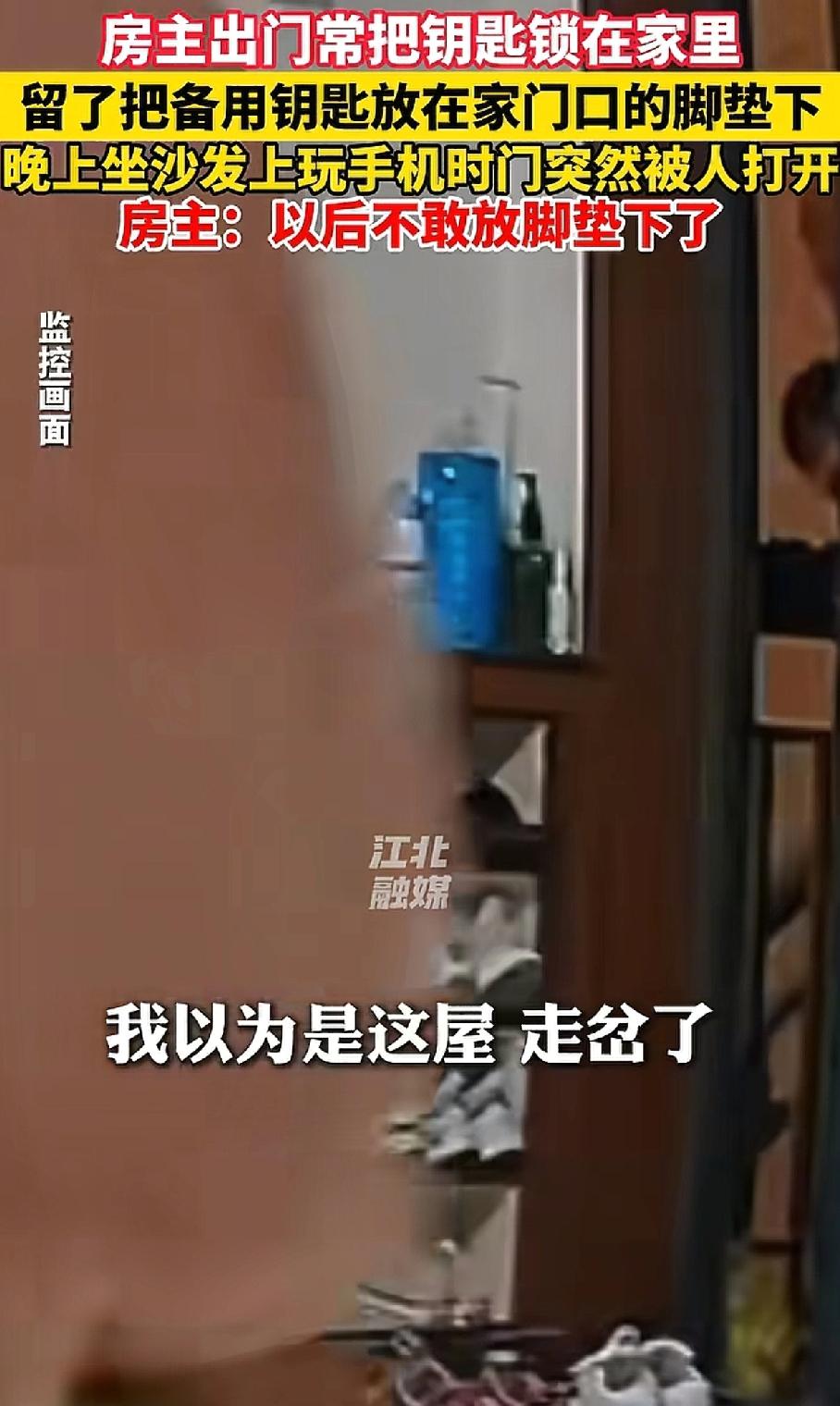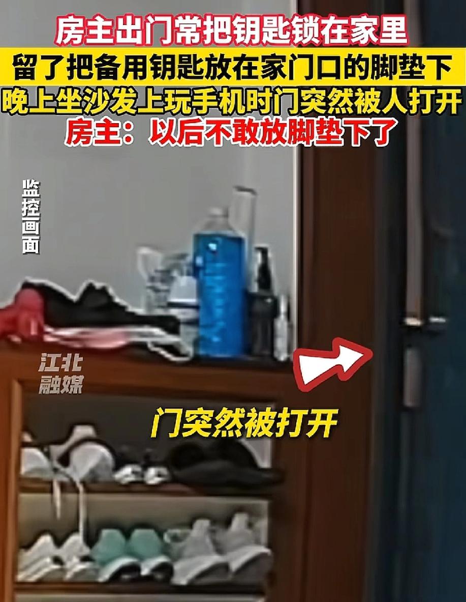 “你出门会把钥匙放在哪里?”北京的夏女士出门经常忘带钥匙,于是将钥匙放在门外的地垫下面。没想到陌生人轻松拿到钥匙便把门打开了。 夏女士刚刚吃完晚饭,老公在厨房收拾,夏女士便坐在沙发上看手机,这时门突然被打开了。 夏女士赶忙从沙发上起来,门外的老人问夏女士说:“是不是你们卖房子?” 夏女士说:“没有啊!” “那我走差了,我孙子带我来的,我要买房子”老人连忙说道。 夏女士一直觉得钥匙放在地垫下面,只有自己一家人知道,一个陌生人就能轻轻松松的将门打开,这也太可怕了。 此事也引起了网友们的热议,有网友说:“脚垫下面,消防柜,水井,电井,门框,都是很危险的。你想到的,也是别人想到的。” 还有网友说:“我猜应该是偷东西,盯了你们家好久了,然后发现家里有人就问是不是卖房子。” 也有网友说:“还是我婆婆厉害,她自己 藏起来的钥匙,我们谁都找不到,有时候她自己都找不到。” 相信有了这次经历夏女士再也不会把钥匙放在门外的地垫下面了。 不得不说这个事情太可怕了。幸好这事情是当时晚上6:43发生的,全家人都在家里面。如果是其它时间也许家就真的被偷了。万一孩子自己在家那后果真的不堪设想。 你经常把钥匙放在哪里?欢迎评论区留言讨论。