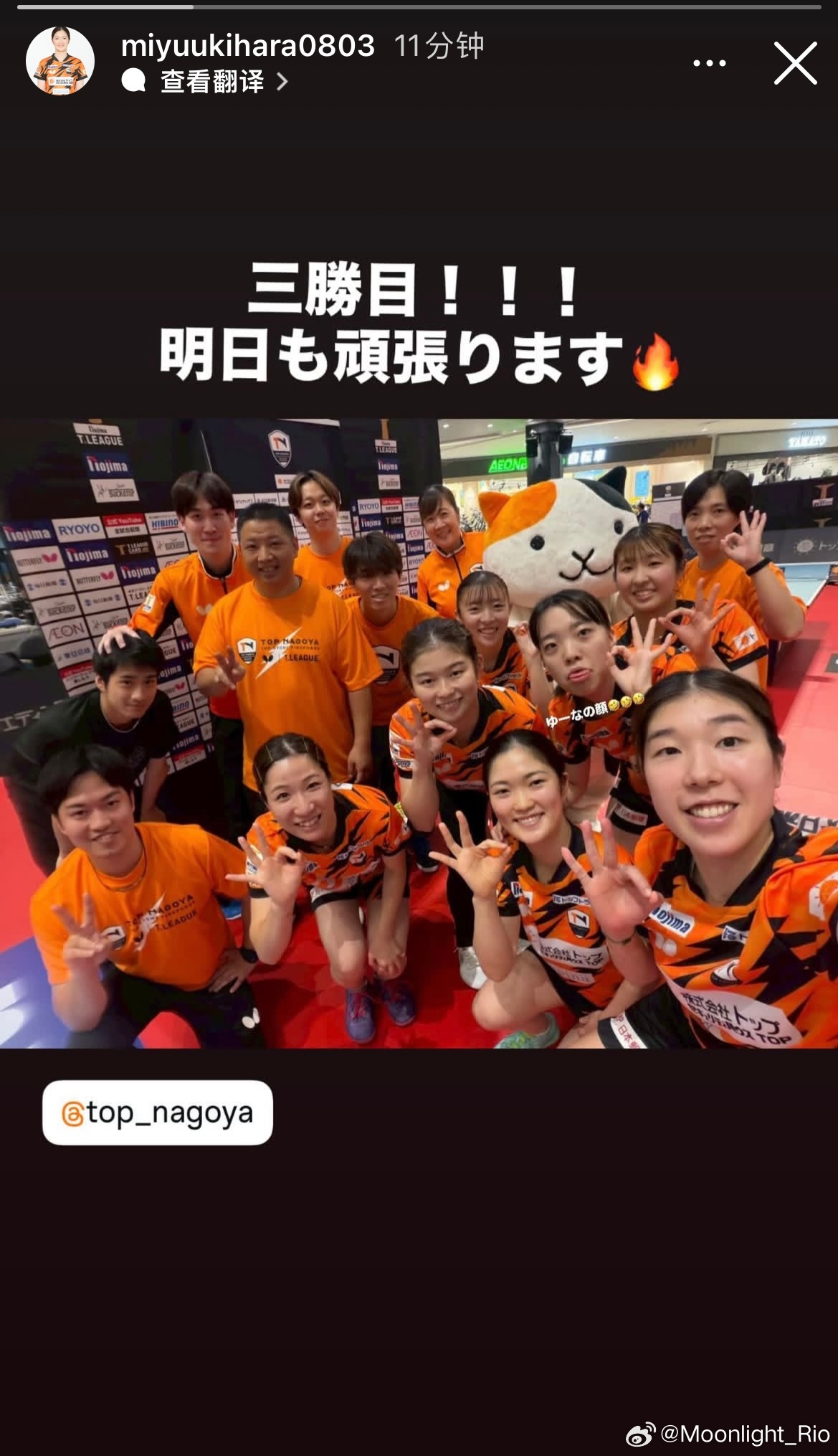 木原美悠:第三场胜利!!!明天也会继续加油🔥