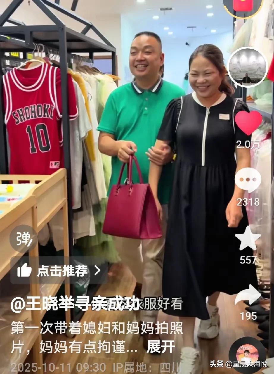 说真的,王晓举确实没有眼缘, 他不像解清帅还有谢浩男, 一眼看了让人眼前一亮,而王晓举总是有点让人说不出来的感觉, 反正我是不喜欢, 至于他带不带货跟咱们没啥关系, 但是我总感觉他的每一个视频像演的, 有点学解清帅还有谢浩男一家拍视频的节奏, 总是以感动的内容出现在大家的视野中, 不是给他的妈妈做好吃的,就是给他的妈妈洗脚, 芝麻点小事都会搬出来弄两下[捂脸] 今天王晓举又带他的妈妈来到照相馆拍照了[呲牙]