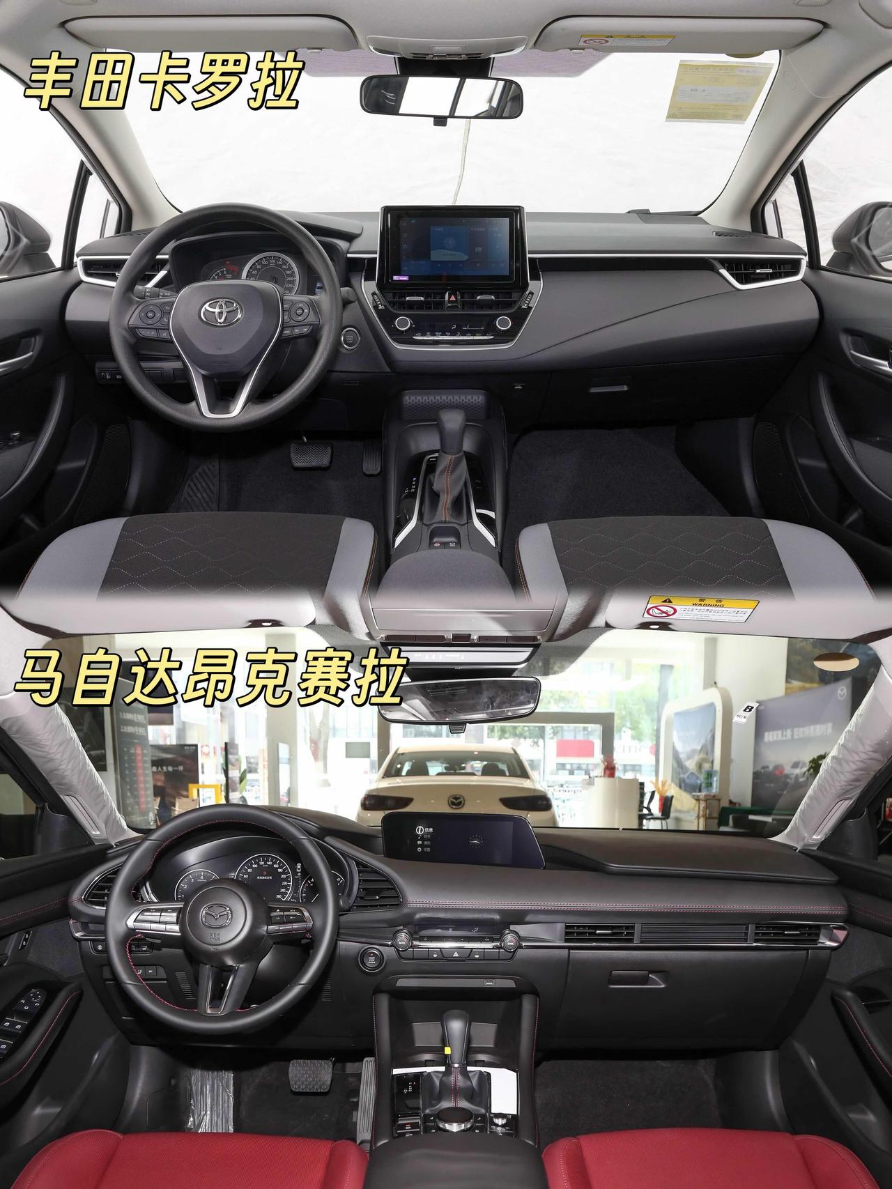 上图是丰田卡罗拉的内饰 下图是马自达昂克赛拉的内饰 都是日系品牌 都是紧凑型轿车 但两者在内饰风格上明显不一样 不知道各位喜欢哪一款