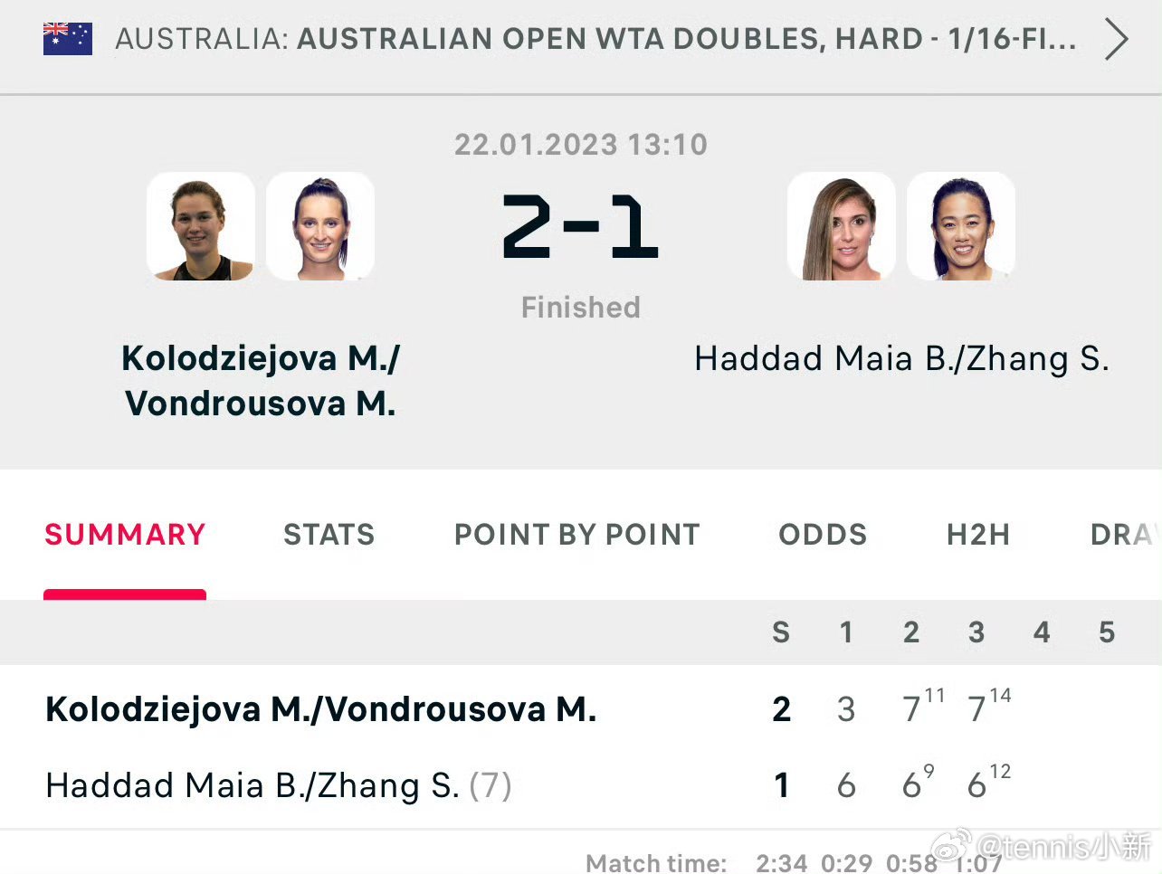 🇨🇳蒋欣玗/詹皓晴 vs谢淑薇/🇨🇿斯尼亚科娃