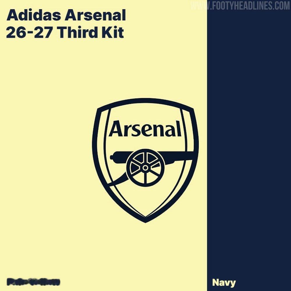 FootyHeadlines消息,阿森纳26/27赛季第二客场球衣将采用淡黄色和闪电图案。