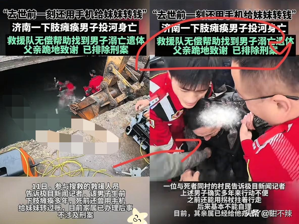 济南下肢瘫痪,生活不能自理的男子投河自尽,他临走前把手机里的钱都转给了妹妹,把银