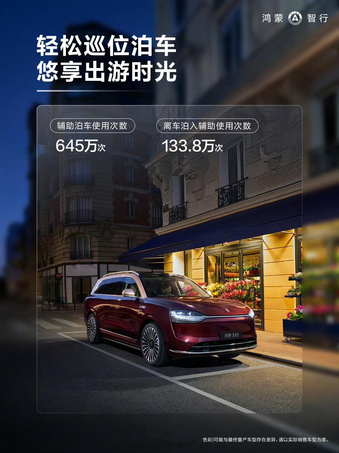 -车主们假期间使用辅助泊车 645 万次、离车泊入辅助使用次数 133.8 万次;