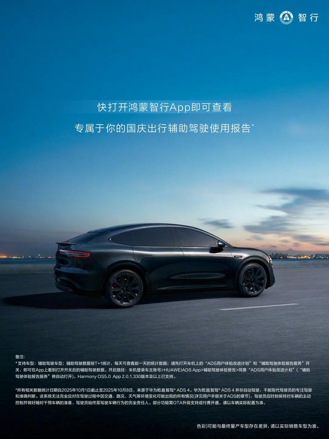 鸿蒙智行公布“国庆出行辅助驾驶使用报告”: