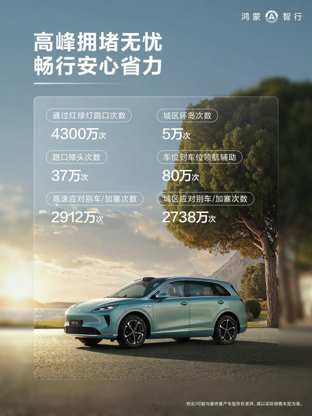 -假期间累计帮助车主通过红绿灯路口 4300 万次、城区环岛 5 万次、路口掉头次数 37 万次、车位到车位领航辅助 80 万次、高速应对别车 / 加塞次数 2912 万次、城区应对别车 / 加塞次数 2738 万次。