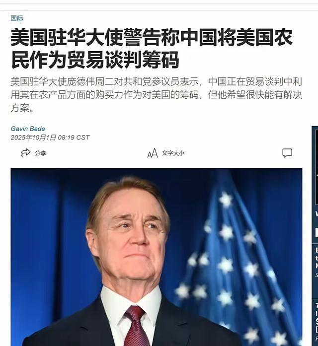 美国人倒打一耙,美国驻华大使庞德伟蛮不讲理的说,中国政府在贸易谈判中,将美国农民作为贸易谈判筹码。美国人急了,开始胡搅蛮缠了。 说起这事儿,得从中美贸易那点破事儿说起。几年前贸易战打得火热,美国先加关税,针对中国的高科技产品下死手,比如华为、中兴这些企业,直接被卡脖子,高端芯片、光刻机啥的,一概不卖。这不等于把一大堆中国公司当成了谈判工具吗?中国企业订单没了,工人失业,供应链断裂,那损失可不是小数目。可美国那边呢,从来不觉得自己有问题。现在轮到农产品,美国中西部那些农场主遭了秧,中国进口大豆少了三成,转头找巴西、阿根廷买去了。庞德伟这话说出口,就跟没照镜子似的,明明自家先玩这套,现在倒怪别人不讲理。 庞德伟的指责听着挺气人,他说中国用购买力当武器,操控出口量来逼美国让步。这逻辑乍一听好像有道理,但细抠就露馅了。中国作为全球最大农产品进口国,本来就得根据市场价和供应稳定来选货源,谁家便宜、谁家靠谱就买谁家的,这叫正常商业行为。去年中美谈了半天协议,中国承诺多买美国货,可美国那边关税没全撤,技术封锁也没松口,中国凭啥傻乎乎地继续当冤大头?今年上半年,中国从巴西进口大豆就占了总量的四成多,这不是报复,是实打实的风险管理。庞德伟跑来哭穷,说美国农民日夜劳作的成果被当杠杆,这话搁谁听都觉得酸溜溜的,可他忘了,美国自己对华出口管制不也把中国科技企业逼到墙角?双标玩得飞起,一边封锁一边喊公平,搁谁身上都得翻白眼。 美国农民这回真够呛的,中西部那些大豆田,今年收获季机器轰鸣,谷仓却空荡荡的。库存积压,价格跌到谷底,部分农场主只能靠政府补贴勉强过活。北达科他州的参议员约翰·霍文在会上直言,中国把农民当筹码,得想办法反制。这话听着像在为选民抱不平,可本质上还是想逼中国多买货,恢复旧日荣光。特朗普也掺和进来,在社交媒体上发帖,说中国为谈判不买大豆,害了美国农民。这位老哥当总统时就爱这么干,推特上一顿操作,关税加码,现在下台了还搁这儿添乱。结果呢?中国进口商早有备胎,巴西产量上去了,阿根廷也跟上节奏,美国货卖不动,纯属自找的。 美国国会山那边开始躁动,共和党议员们开会研究对策,有人提议加更多关税,有人想拉盟友一起施压。可这招儿早几年用过了,没啥新鲜感。中国这边稳扎稳打,坚持多边贸易框架,不搞单方面让步。日内瓦的视频会议上,双方聊了聊农产品配额,可分歧没桥。短期看,美国出口继续下滑,农民协会公开抱怨政策失误,长远说,这暴露了华盛顿的弱点:太依赖中国市场,却又不愿平等互惠。庞德伟在北京大使馆发报告,催国务院加码,可这些动作只会让供应链更乱,港口集装箱堆着不动,吊车闲置。 说白了,美国急眼了,就开始胡搅蛮缠。庞德伟这番话,本意是转移视线,让国内选民觉得中国是坏人,自己是受害者。可国际上谁不知道这套把戏?欧盟、日本这些伙伴,早就在中美间走钢丝,农产品贸易他们也掺一脚。中国转向多元化进口,不光稳了自家供应,还拉动南美经济,这叫共赢,美国倒好,封锁别人还怪别人不买账。想想华为那事儿,美国禁售芯片,中国企业转头自研,现在芯片产量蹭蹭上涨,这不也证明了封锁适得其反?农产品也一样,美国农民苦哈哈,中国消费者照样吃饱喝足。这整件事儿,让人看清了美国那点小九九。表面上为农民鸣不平,骨子里还是想重塑贸易格局,让中国多让步。