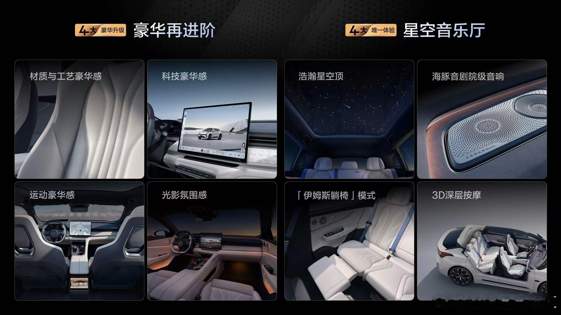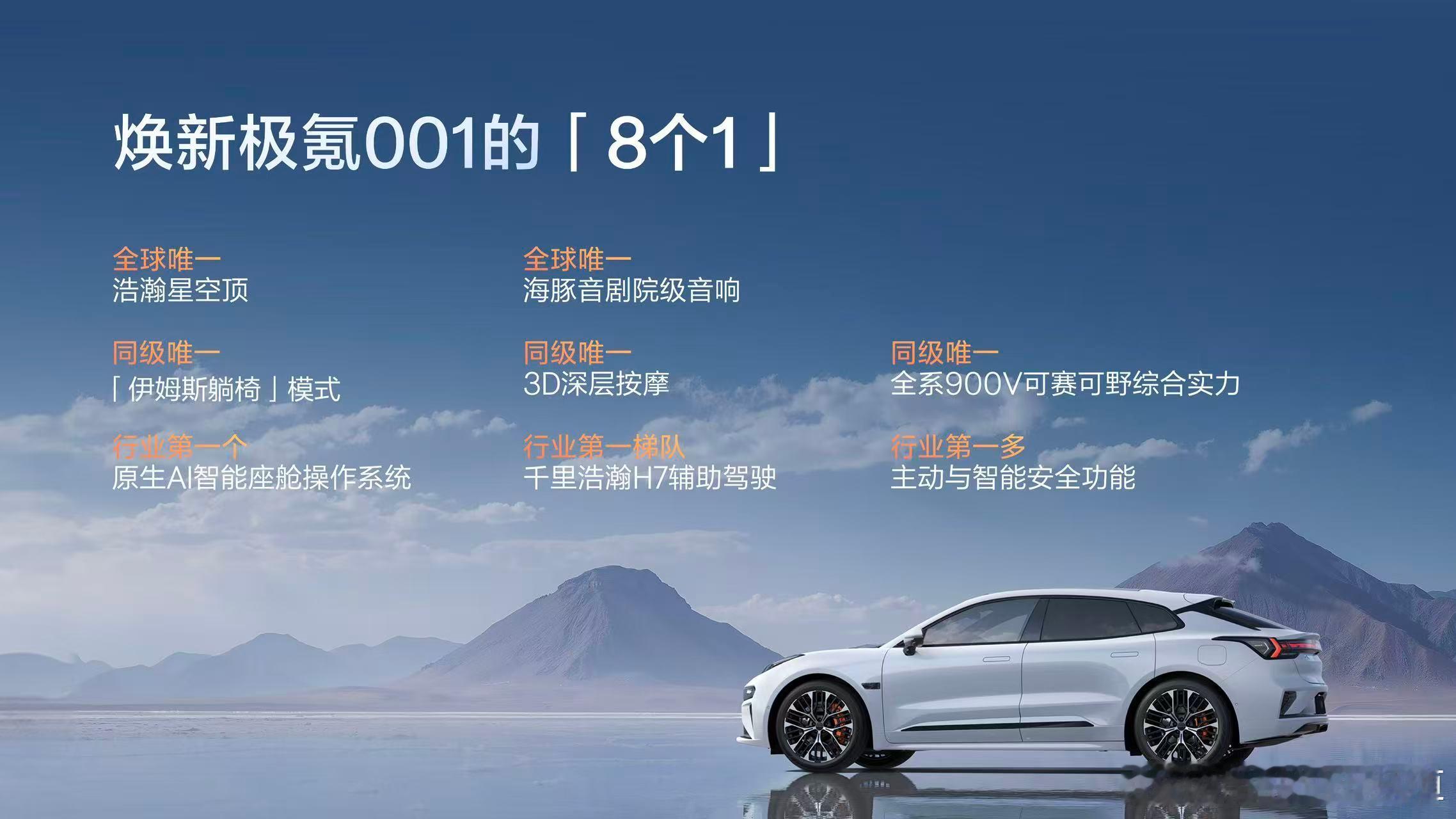 作为改款车型,新车全系基于全栈900V平台开发,并将标配千里浩瀚H7辅助驾驶。此外舒适性配置增加了不少,座椅拥有3D深层按摩座椅,同时全系标配座椅加热和吸风式座椅通风。大家觉得新车性价比如何?焕新极氪001猎装豪华新标杆极氪001焕新上市