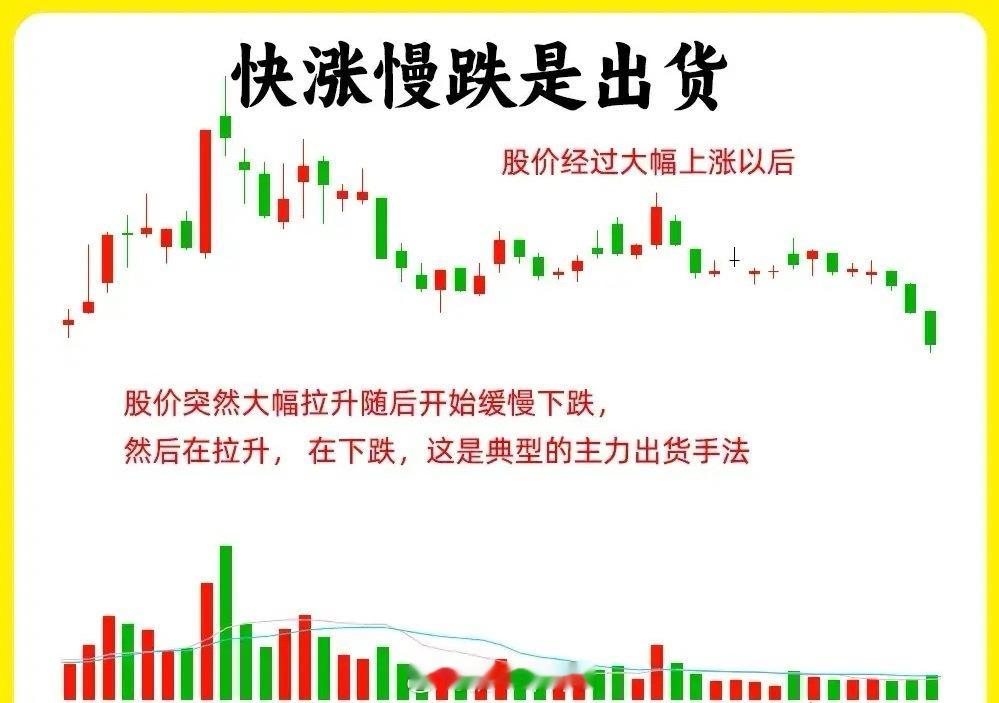 - 含义:这是典型的主力出货手法,通过诱多拉升吸引跟风盘,再缓慢派发筹码,最终完成出货。