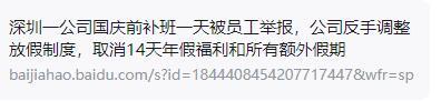 这事挺有意思。深圳有家公司因为台风耽误了工期,想在国庆前补一天班,结果被员工举报