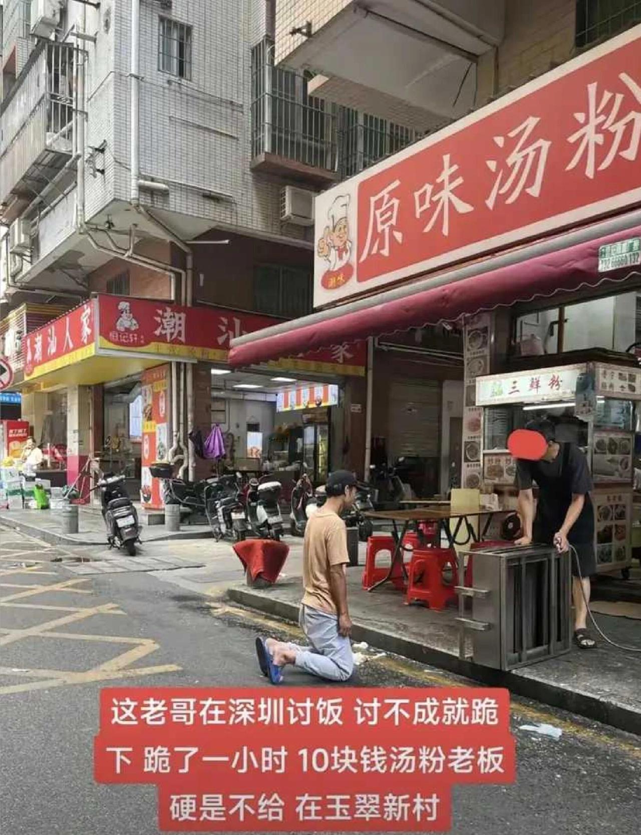 这事儿在深圳一家肠粉店门口发生的,看着真让人心里不是滋味。 一个年轻男的突然就跪下了,跟老板说三天没吃饭,求给份肠粉。老板没给,这男的居然就在那儿跪了一个小时,最后还是没吃上。 视频传到网上立马炸了。有人说老板太冷血,一份肠粉才几个钱,帮一把怎么了;也有人觉得理解,说那地方靠近龙华汽车站,周边“三和大神”多,今天施舍一个,明天能来十个,小店确实难做。 说实在的,这一跪真的只是为了碗肠粉吗?饿到不行的人,其实更可能想找个临时工换顿饭,而不是直接下跪。这一跪,看似卑微,实际上是把对方架在火上烤——不帮就是没良心。 现在这年头谁都不容易,但解决温饱是不是能有更体面的方式?救助站、社区食堂、日结零工,都比当街下跪强。广州有些素食店就做得挺好,直接贴告示说“如有困难请点二号餐”,既帮了人又维护了尊严。 回过头看这事,年轻人跪的是生活的无奈,老板拒绝的或许是这种道德绑架的泛滥。我们很难简单说谁对谁错,但一个更完善的社会救助体系,才能真正避免这种“下跪讨饭”的无奈场面。 你觉得呢?是店家太无情,还是现实所迫?评论区聊聊。