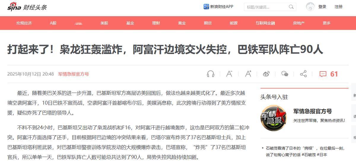 10月10日凌晨,巴基斯坦空军发动大规模越境空袭,JF-17枭龙、F-16战机和翼龙无人机同时出击,直指阿富汗境内四大城市的巴基斯坦塔利班据点。 这是巴基斯坦近年来首次直接打击阿富汗首都喀布尔的目标,标志着地区反恐形势进入新阶段。 说白了,巴基斯坦纯粹是被折腾得没退路了,换成任何一个主权国家,被这么反复拿捏都得拍桌子。要知道在南亚这片地界,直接把空袭目标设在邻国首都,这事儿几十年都没见过,要是还有半分余地,巴基斯坦也犯不着冒这种破坏地区稳定的风险。 这一切的根源都绕不开那个躲在阿富汗境内的“麻烦制造者”——巴基斯坦塔利班(TTP)。 2025年这一年,巴基斯坦军队光是在阿富汗方向就阵亡了900人,这数字创了近20年的新高,相当于每天都有两三个士兵倒在边境线上,这种持续失血谁顶得住。 就说6月28号那次,开伯尔-普什图省的安全部队在市场拆弹时,突然被自杀式汽车炸弹炸个正着,紧接着又是一顿扫射,13名士兵当场牺牲,还有29人带着重伤躺进医院,事后TTP的分支还大摇大摆地宣称负责,这简直是赤裸裸的挑衅。 更让人窝火的是,这种袭击还越来越密集。10月8号古勒姆地区的山谷里,11名巴军士兵刚进入伏击圈就被打死;48小时不到,德拉伊斯梅尔汗的警察培训中心又遭突袭,7名警察没了性命。 最关键的是,巴基斯坦不是没试过讲道理。他们多次拿着TTP在阿富汗活动的实锤证据,找阿富汗临时政府交涉,小到武装分子的藏身窝点,大到武器库的位置,说得明明白白,就求对方能出手清剿或者把人交出来。 可阿富汗塔利班那边始终态度暧昧,嘴上说着要合作,实际却睁一只眼闭一只眼,任由TTP在自己地盘上招兵买马、囤积弹药。 10月8号的伏击成了压垮骆驼的最后一根稻草。那天巴军在古勒姆地区遭突袭,9名士兵和2名军官当场殒命,TTP当天就跳出来邀功,这种嚣张气焰彻底点燃了巴军的怒火。 忍了大半年的巴基斯坦终于决定不再客气,直接把家底亮了出来——JF-17枭龙、F-16战机配上翼龙无人机,三种装备组队出击,目标直指阿富汗境内四大城市的TTP据点,连首都喀布尔都没放过,摆明了就是要敲山震虎。 这次行动能看出巴基斯坦是真下了决心,连战术安排都透着股“不搞虚的”的劲儿。枭龙Block3挂载着CM-400AKG超音速导弹,既能精准炸地面目标,又能防备空中威胁,之前5月在克什米尔9分钟就击退过印度的阵风战机,这次对付没防空能力的TTP简直是降维打击。 翼龙无人机更不用说,悄咪咪在天上侦察,锁定目标就发射导弹,阿富汗塔利班的沙希丹哨所就是这么被一炮端掉的。首轮空袭就炸掉了5个关键目标,40多个武装分子当场丧命,这种打击力度比之前的零星反击狠多了。 就算阿富汗塔利班后来组织敢死队反扑,突袭了7个边境哨所,还拿下过巴军的一处阵地,但根本撑不住巴军的火力压制。毕竟巴基斯坦背后有自己的军工体系,无人机、导弹、炮弹都能自己造,还有中国、土耳其这些国家支持,要钱有钱要装备有装备。 反观阿富汗,说白了就是个农业国,手里的家伙大多是当年从美军那捡的破烂,跟巴军硬拼纯属耗不起。没过多久,阿富汗塔利班就扛不住了,主动宣布停火,而巴军顺势拿下了19个阿富汗边境哨所——这些哨所之前全是TTP用来渗透袭击的跳板,现在等于直接端了他们的前哨站。 巴基斯坦这次算是把底线彻底亮清楚了:哪怕空袭喀布尔会引发外交风波,哪怕会被指责侵犯主权,也得干这一票——毕竟再不出手,国内的伤亡数字还得涨,民众的怨气还得积累,到时候别说地区稳定,自己的政权稳定都得受影响。 而且这招敲山震虎确实有用,不光是TTP,连背后可能撑腰的势力都得掂量掂量,以后再想把阿富汗当基地算计巴基斯坦,就得先想想喀布尔上空的炸弹会不会落到自己头上。 说到底,巴基斯坦这次就是用最直接的方式告诉所有人:我的底线在这,再碰就别怪我不客气。