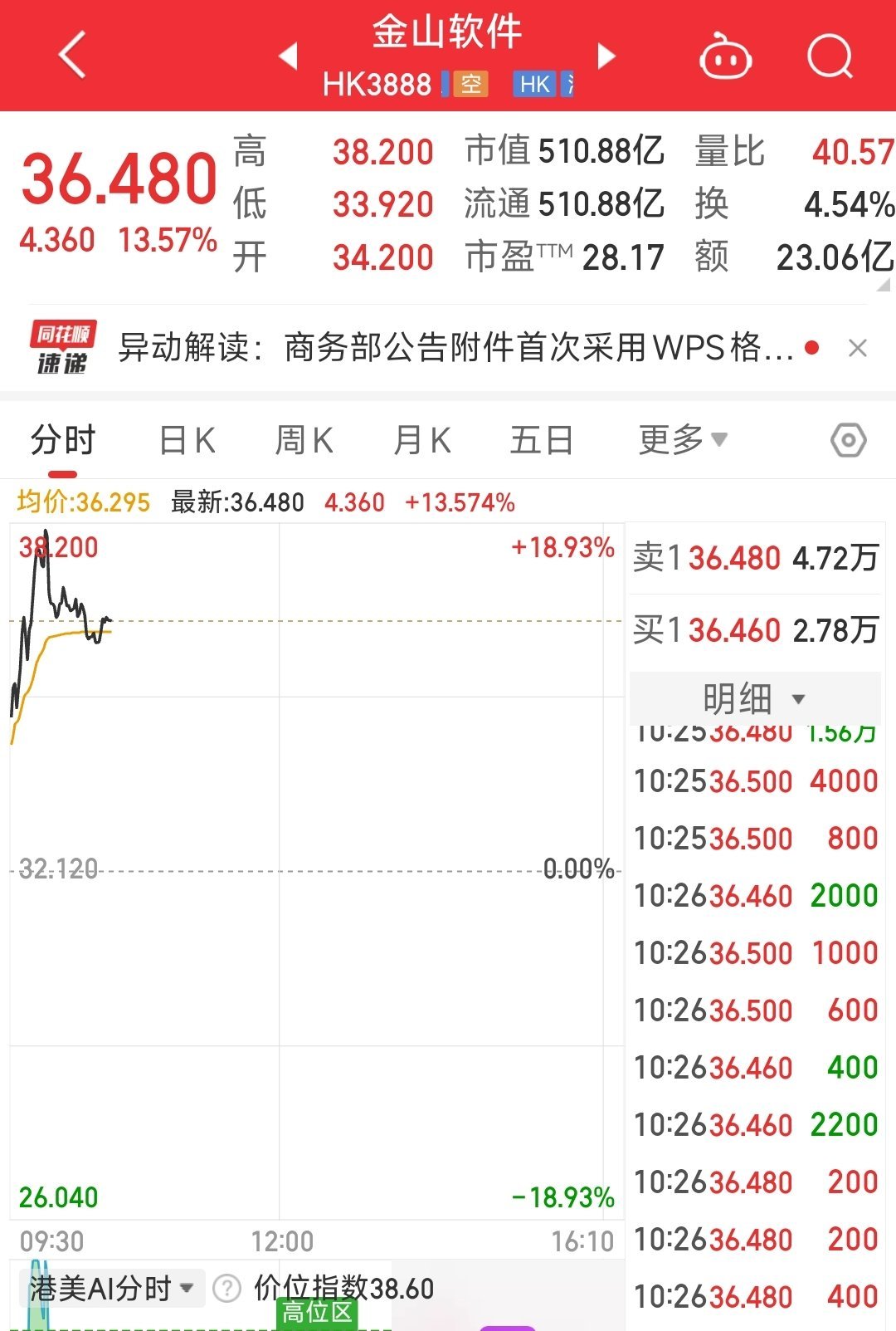 金山办公涨超17%国产软件板块震荡拉升 ​​​
