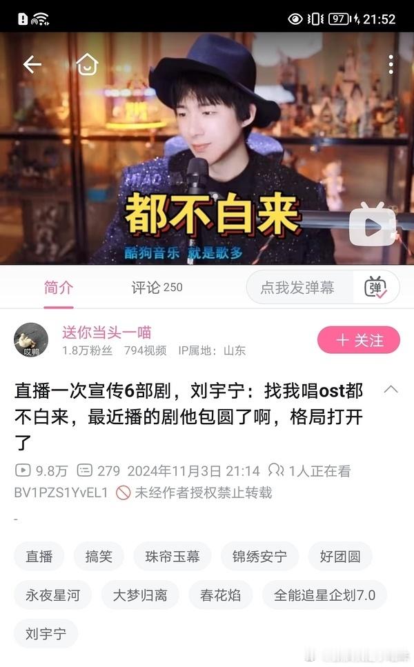 刘宇宁:内娱大剧OST巨头,为啥大家都爱找刘宇宁呢???为啥呢??