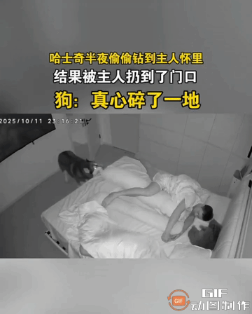 “投怀送抱”被一只哈士奇给演活了! 被爱的已经风生水起,不爱的已经心碎一地。 作为一只有灵魂有想法的哈士奇,怎么也想不到,有一天会被冷落抛弃得如此彻底!你可以不爱,但你把我抱走抛弃在门口这种伤害和侮辱就实在太伤狗狗的心了… 一家主的监控流出: 一只哈士奇看到主人夫妻各睡各的睡得很香,就连喵星人都得以允许上床伺候他们就寝。如今看着男主抱着长枕头入睡,汪星人就想,平时你不是抱老婆就是抱喵星人,说好的雨露均沾的呢?平时对我不是挺好的吗?为什么今晚宁愿抱枕头也不肯抱我? 汪星人想不通了就不再去想了,既然如此,那么就只能自己争宠了。 只见它把男主抱着的长枕头轻轻的咬拖出来,然后自己跳上床往男主的怀抱里钻,此时汪星人在心里肯定为自己的自以为是的聪明劲点上了一个大大的赞! 什么叫做“争宠献媚”?我这才叫“投怀送抱”! 很快结果来了男主被汪星人吵醒自己很生气,当看到怀里的娇妻美枕变汪星人后更是直接从床上跳了起来,直接一个熊抱就把汪星人给抱走抛到房间门外面去了! 汪星人看到如此决绝的男主人心里终于明白一个道理:男人果然不是好东西,本汪星人已亲测过……