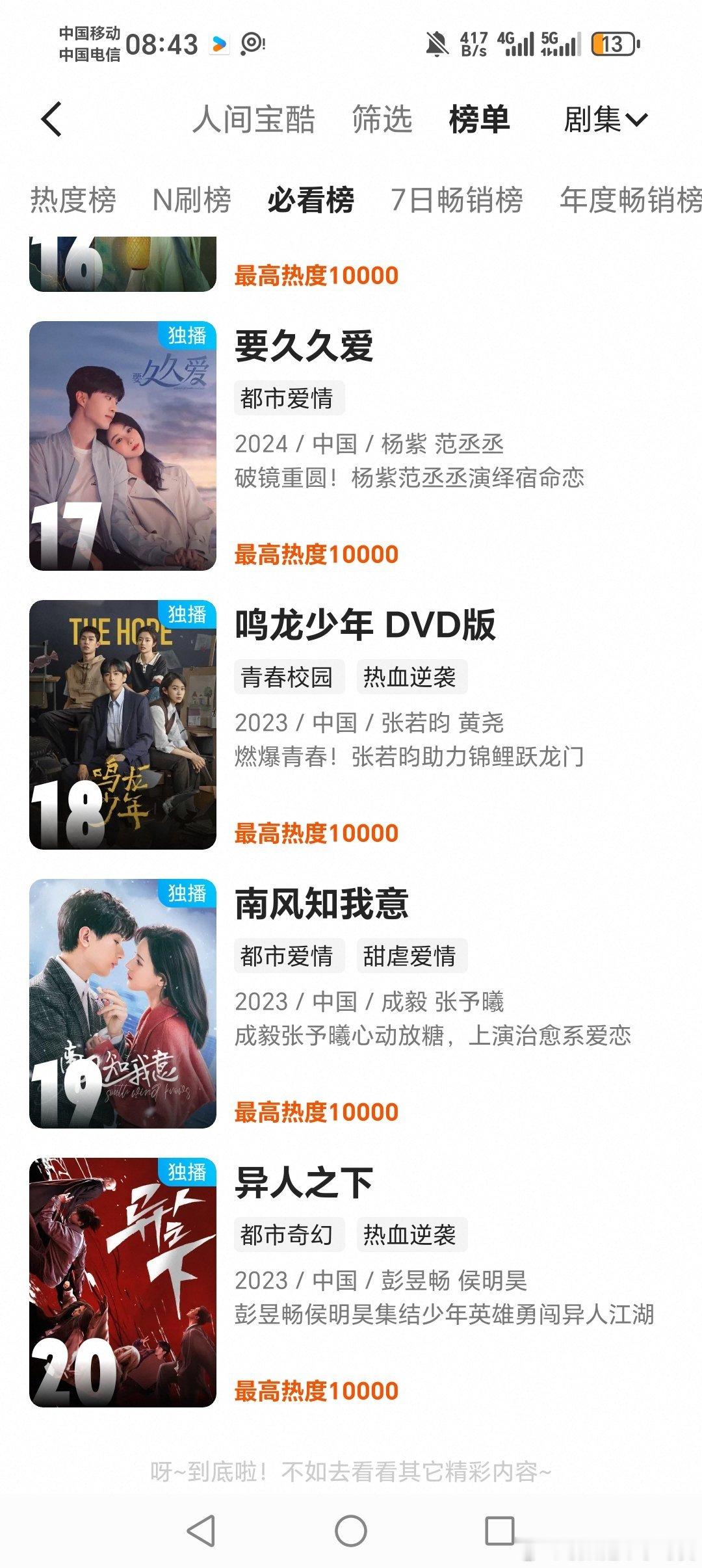 电视剧优酷破万剧 优酷的20部破万剧你看过哪几部? 1藏海传 2以法之名 3难哄 4珠帘玉幕 5凡人修仙传 6少年白马醉春风 7蛮好的人生 8白夜破晓 9清明上河图密码 10边水往事 11雪迷宫 12异人之下之决战!碧游村 13度华年 14墨雨云间 15惜花芷 16花间令 17要久久爱 18鸣龙少年 19南风知我意 20异人之下电视剧[超话]
